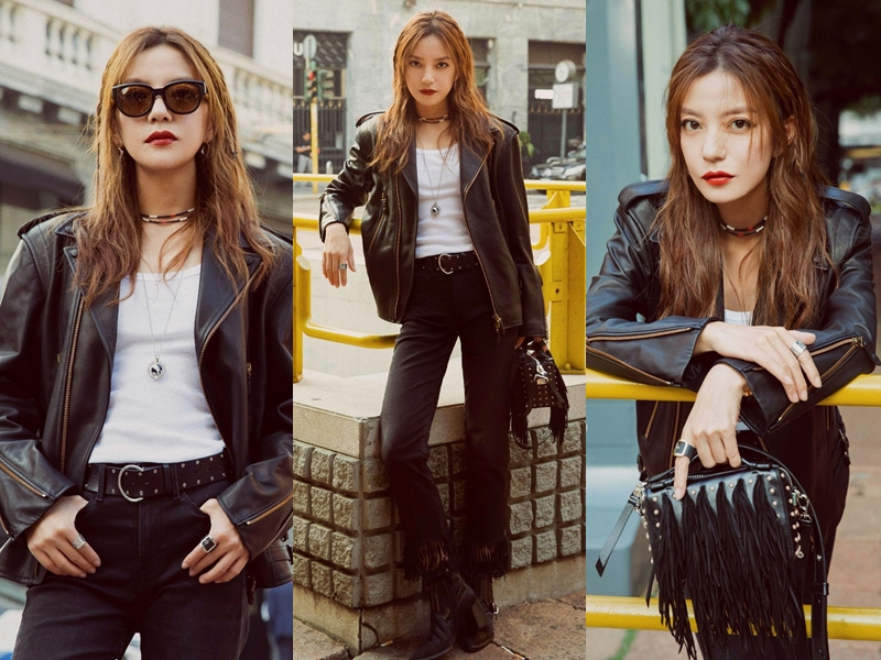 Dù đã bước sang tuổi tứ tuần nhưng nữ diễn viên Triệu Vy vẫn tự tin diện thiết kế “chất chơi” với áo jacket, quần da đen ton-sur-ton. Đặc biệt, cô còn khéo léo khoe vòng 2 thon gọn sau khi giảm 15 kg với áo thun trắng ôm dáng.