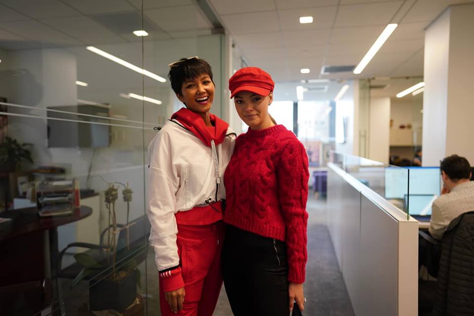 So với các người đẹp quốc tế, H'Hen Niê chọn phong cách khá cá tính, mạnh mẽ cùng những biểu cảm vô cùng đáng yêu. Trước đó, H'Hen Niê và đương kim Miss Universe 2018 cũng hội ngộ trong show thời trang.