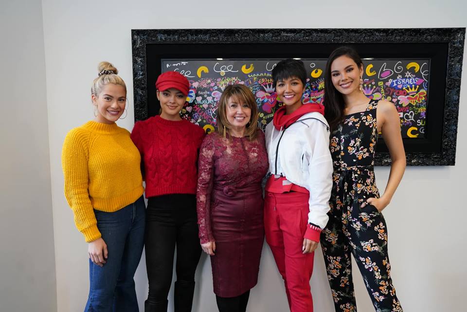 Bộ tứ nữ hoàng sắc đẹp gồm H'Hen Niê, đương kim Hoa hậu Mỹ - Sarah Rose Summers; đương kim Miss Universe - Catriona Gray; cựu Miss Universe 2017 - Demi-Leigh Nel-Peters cùng chủ tịch cuộc thi Miss Universe.