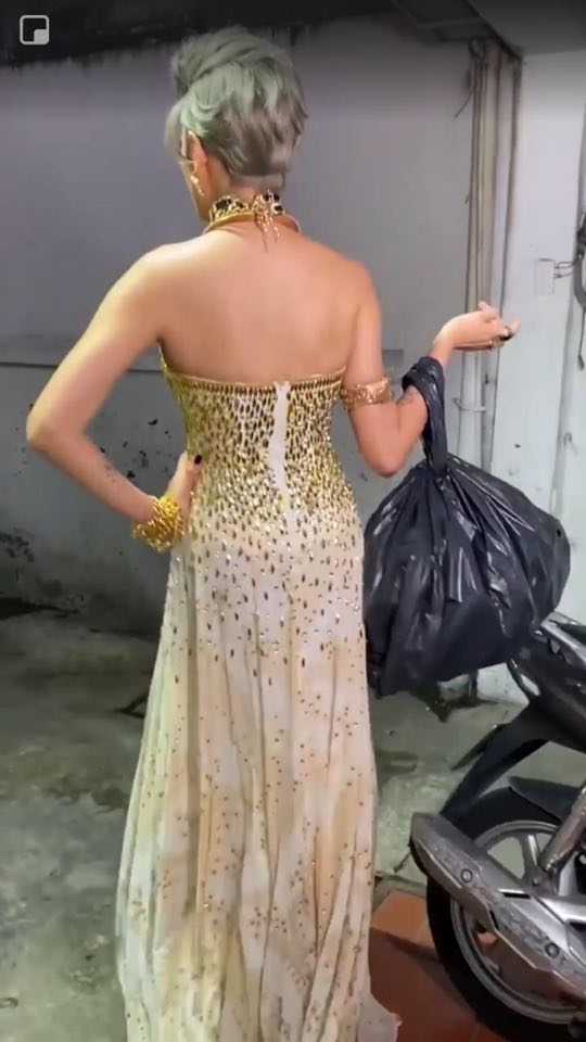 Clip Võ Hoàng Yến ăn mặc lồng lộn chỉ để đi bỏ rác.