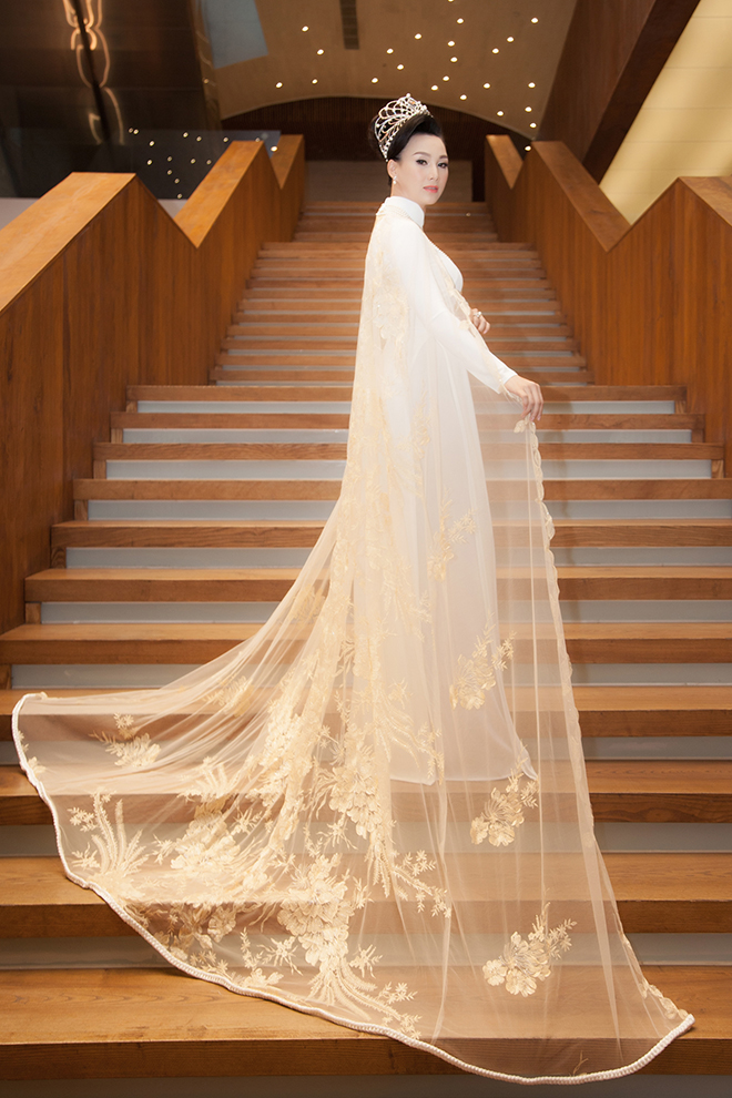 Cô biến tấu chiếc áo dài với nhiều cách rất sang trọng cao quý