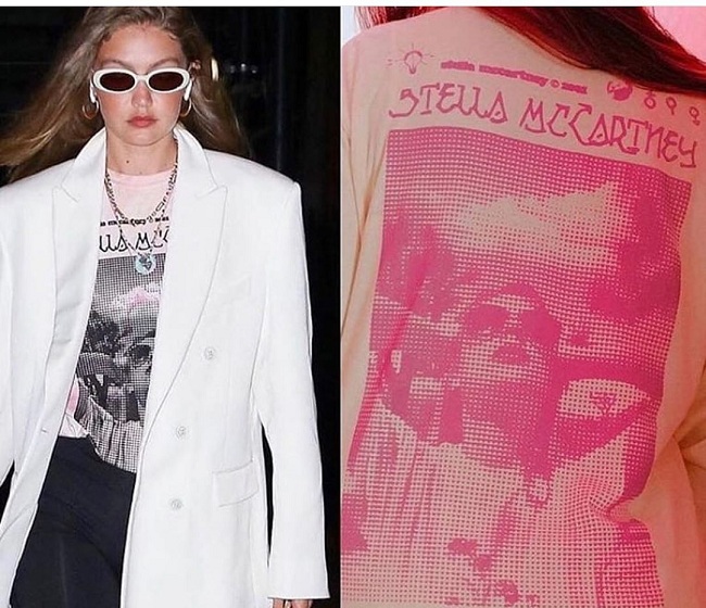 Gigi Hadid là chân dài đầu tiên được sở hữu sớm nhất một trong những thiết kế của cô bạn thân Taylor Swift , cô đã mặc chiếc áo thun trong BST #stellaxtaylorswift khi dạo phố ở New York cách đây vài ngày trước