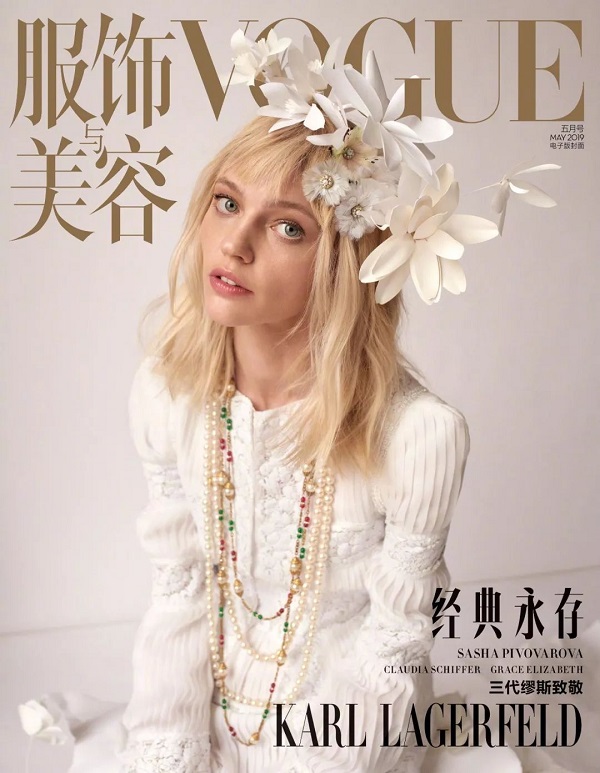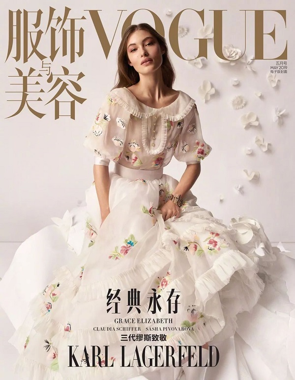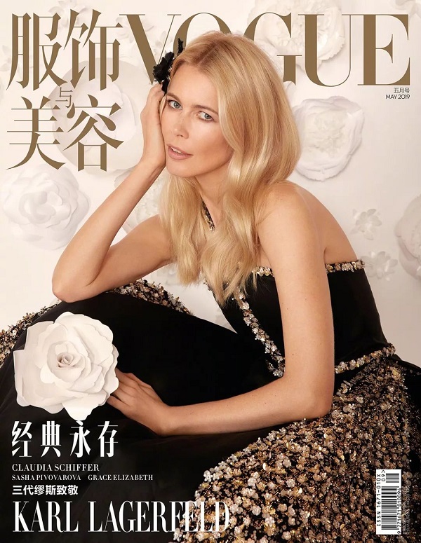 Đây được xem là cách mà tổng biên tập, giám đốc nghệ thuật và các biên tập viên của tạp chí Vouge xứ Trung “tưởng nhớ” đến NTK tài năng Karl Lagerfeld. Sự xuất hiện của ba nàng mẫu như cựu siêu mẫu Claudia Schiffer cùng hai chân dài Sasha Pivovarova và Grace Elizabeth trên bìa báo vô cùng cuốn hút và quyến rũ theo cách rất riêng.