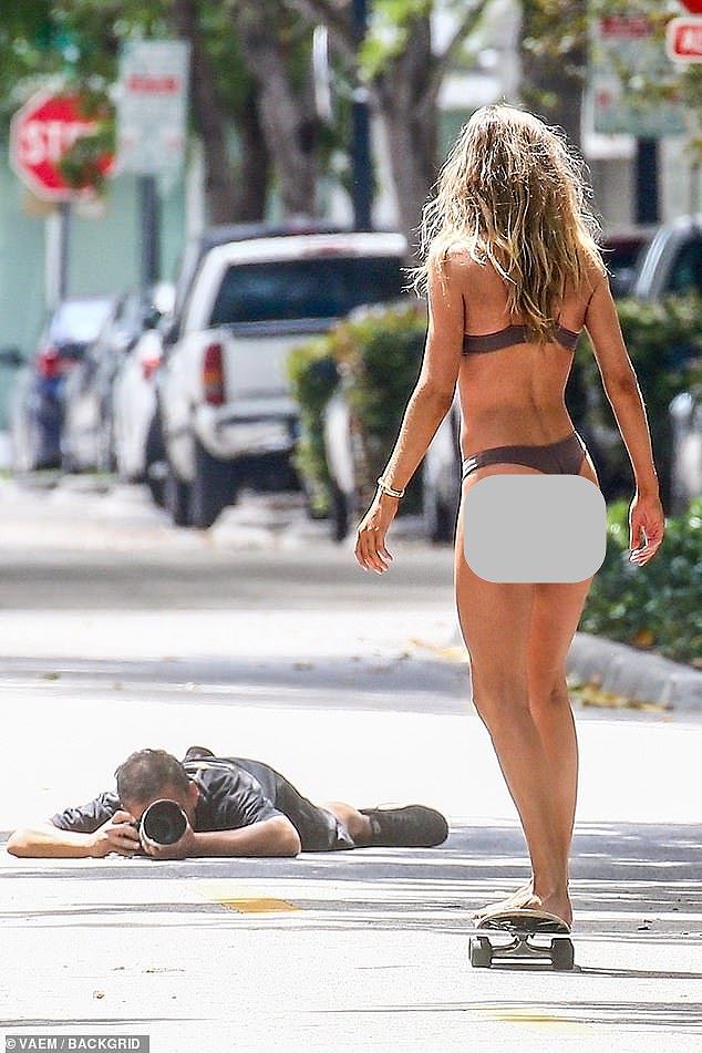 Xuất hiện trong buổi chụp hình trên đường phố ở Miami (Mỹ) mới đây, cựu thiên thần nội y Doutzen Kroes đã khiến các fan hâm mộ phải “trầm trồ” bởi body tuyệt phẩm, quyến rũ khi cô chỉ diện mỗi bikini và lướt ván “điệu nghệ” trên phố.