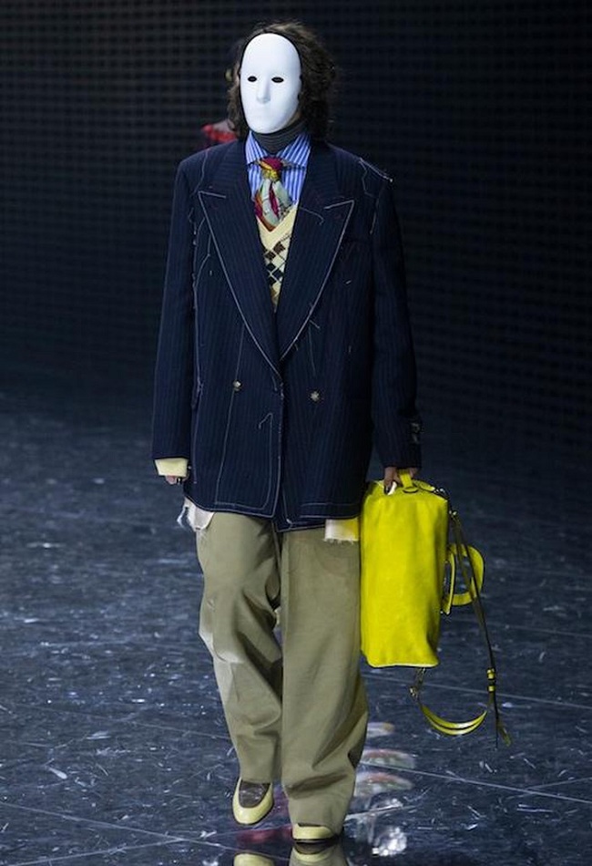 Năm nay dàn người mẫu của Gucci mang mặt nạ sải bước trên sàn catwalk. Cùng cảm hứng đầy nghệ thuật giữa những yếu tố nam tính - nữ tính trong các thiết kế của Gucci vẫn luôn là điểm hấp dẫn đối với giới mộ điệu.