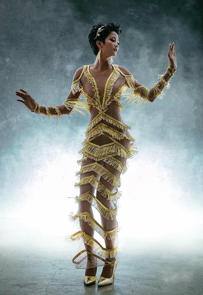 Chiếc váy nude xuyên thấu được sinh ra cho những mỹ nhân có làn da đẹp. Và đương nhiên mỹ nhân có làn da nổi bật như như H'Hen Niê vẫn đủ sức khoác lên mình những bộ xiêm y như vậy.