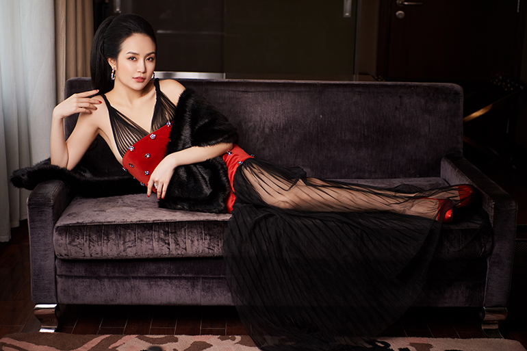 Trong bộ ảnh thời trang mới, Hương Baby tự tin diện những bộ váy dạ hội nằm trong bộ sưu tập ‘Love Velvet’ của NTK Linh Nguyễn, khoe vóc dáng gợi cảm.