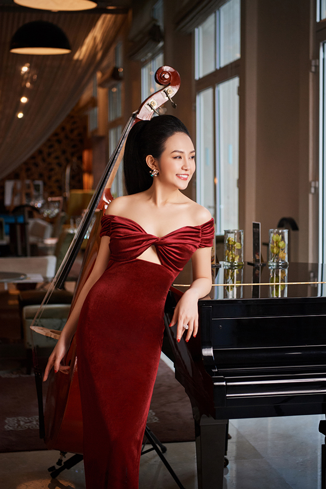 Dù đã trải qua hai lần sinh nở nhưng cô vẫn giữ được thân hình thon thả, khiến không ít khán giả ngưỡng mộ. Những bộ đầm dành cho mùa lễ hội với chi tiết xẻ ngực, xẻ đùi hay hở trọn lưng trần… tôn được đường cong gợi cảm cho bà xã ca sĩ Tuấn Hưng.