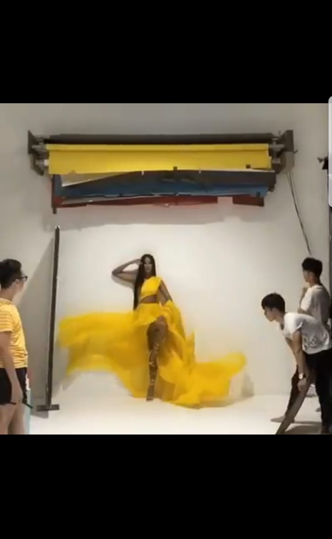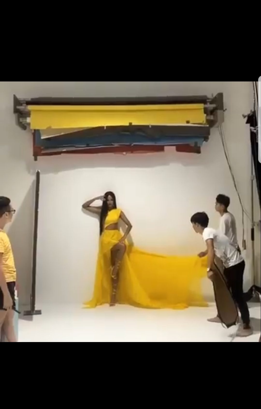 Để tóc dài, diện váy vàng có phần tà mềm mại, chỉ vài giây trong hậu trường chụp ảnh, H'Hen Niê đã khiến khán giả mê mẩn.