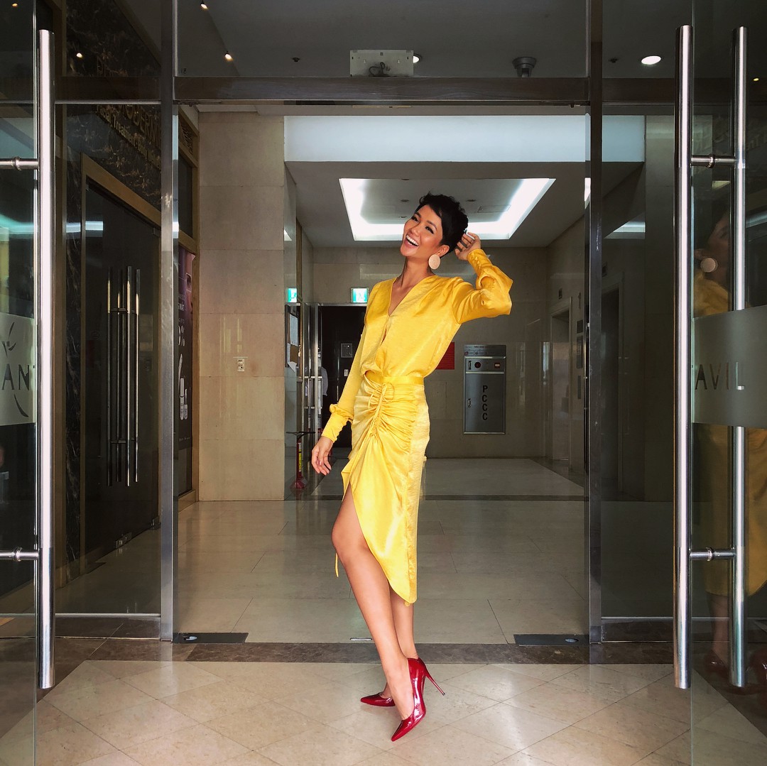 Trước đó, nàng hậu cũng nhiều lần chọn những bộ váy mang tông màu rực rỡ này, với làn da nâu, việc mặc những thiết kế màu nổi thường là điều khá khó, nhưng Hen thì chẳng hề ngần ngại.