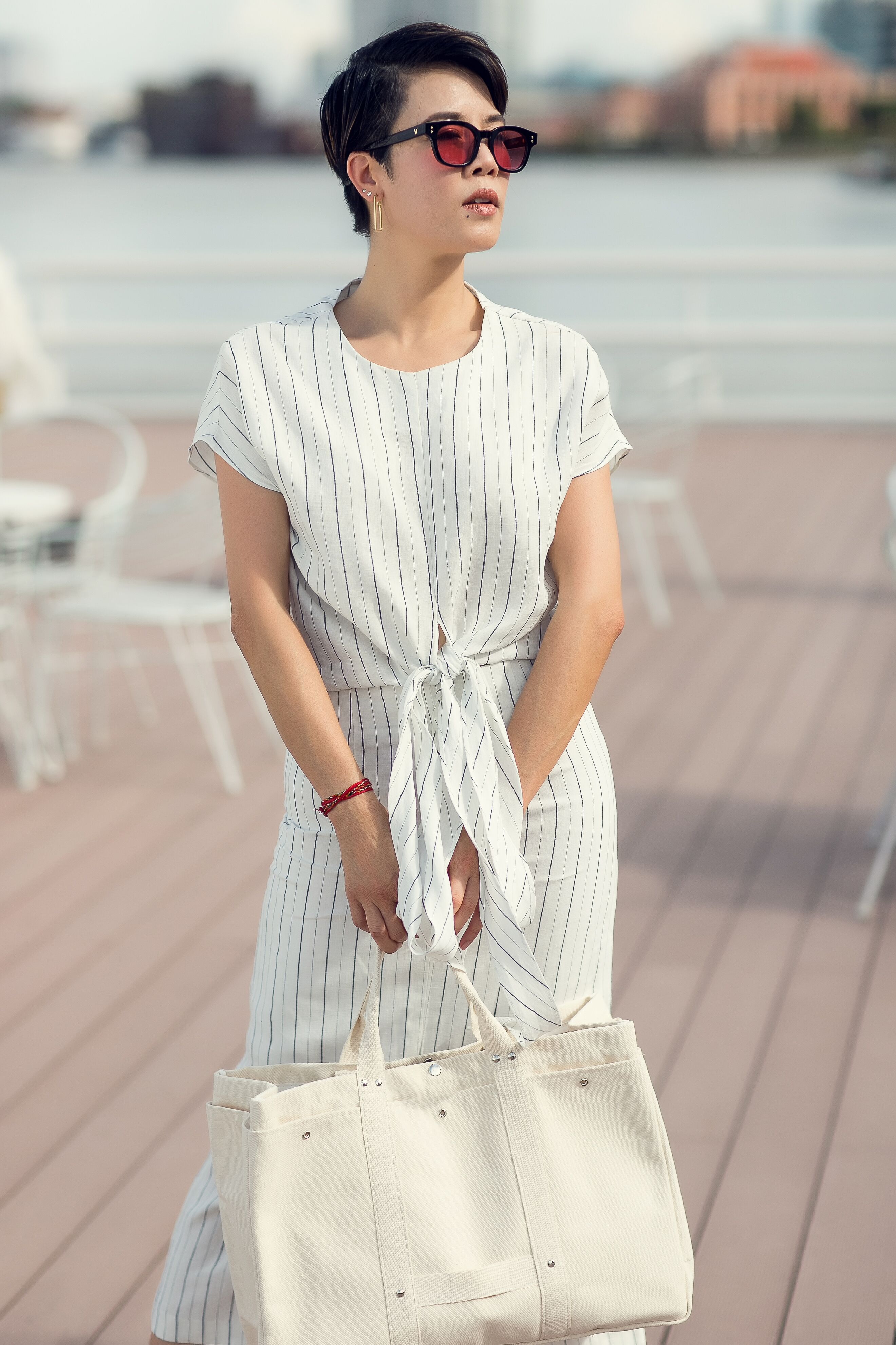 Trong một set đồ khác, Thu Phương biến hóa bản thân với cách mix matchy-matchy vô cùng trẻ trung.