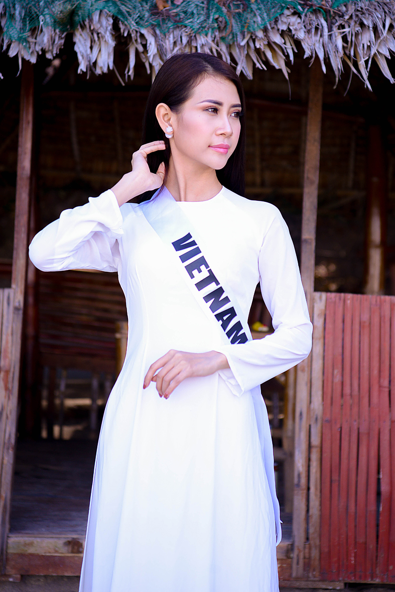 Diện tà áo dài trắng đơn giản, Liên Phương khiến người đối diện không thể rời mắt với nét thanh tao, nhẹ nhàng. Trước đó, top 3 Hoa khôi du lịch Việt Nam 2017 đã dành nhiều thời gian rèn luyện các kĩ năng cần thiết như catwalk, trang điểm nhằm đạt được thứ hạng cao trên đấu trường nhan sắc quốc tế.