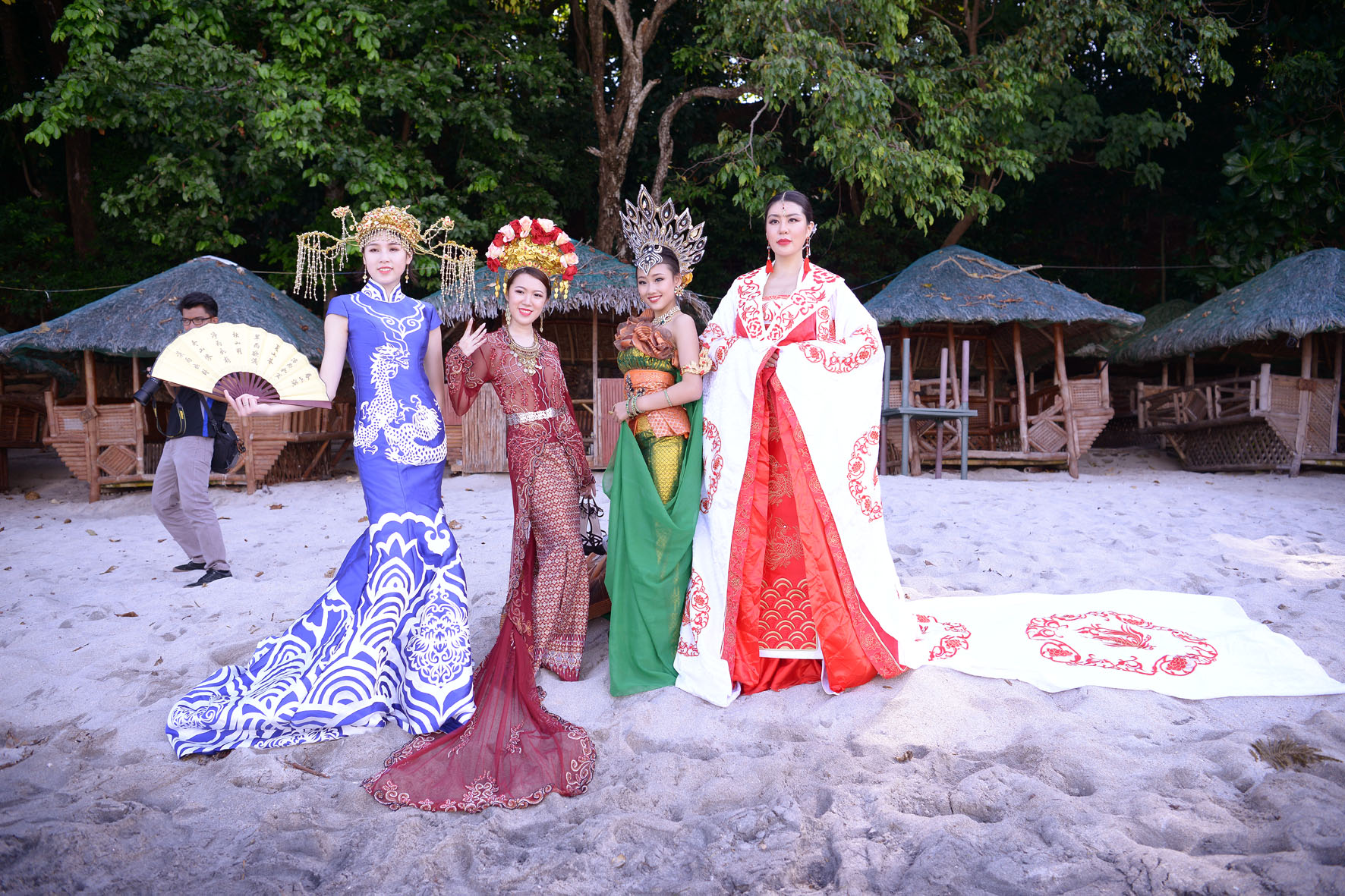 Các đại diện “khoe sắc” với trang phục lộng lẫy, công phu trên bãi biển Camayan.