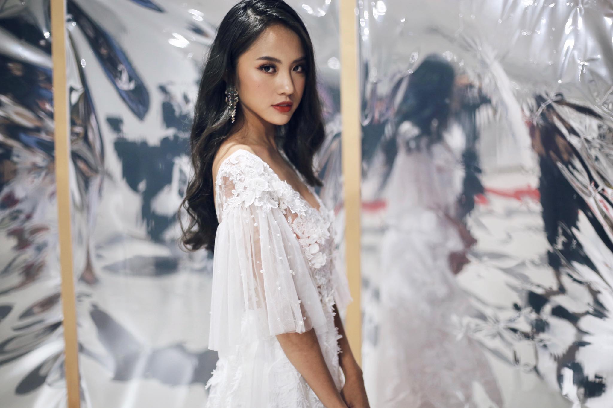 Môt Thanh Vy yêu kiều và nữ tính với đầm trắng thiết kế ren tua rua xẻ chữ V