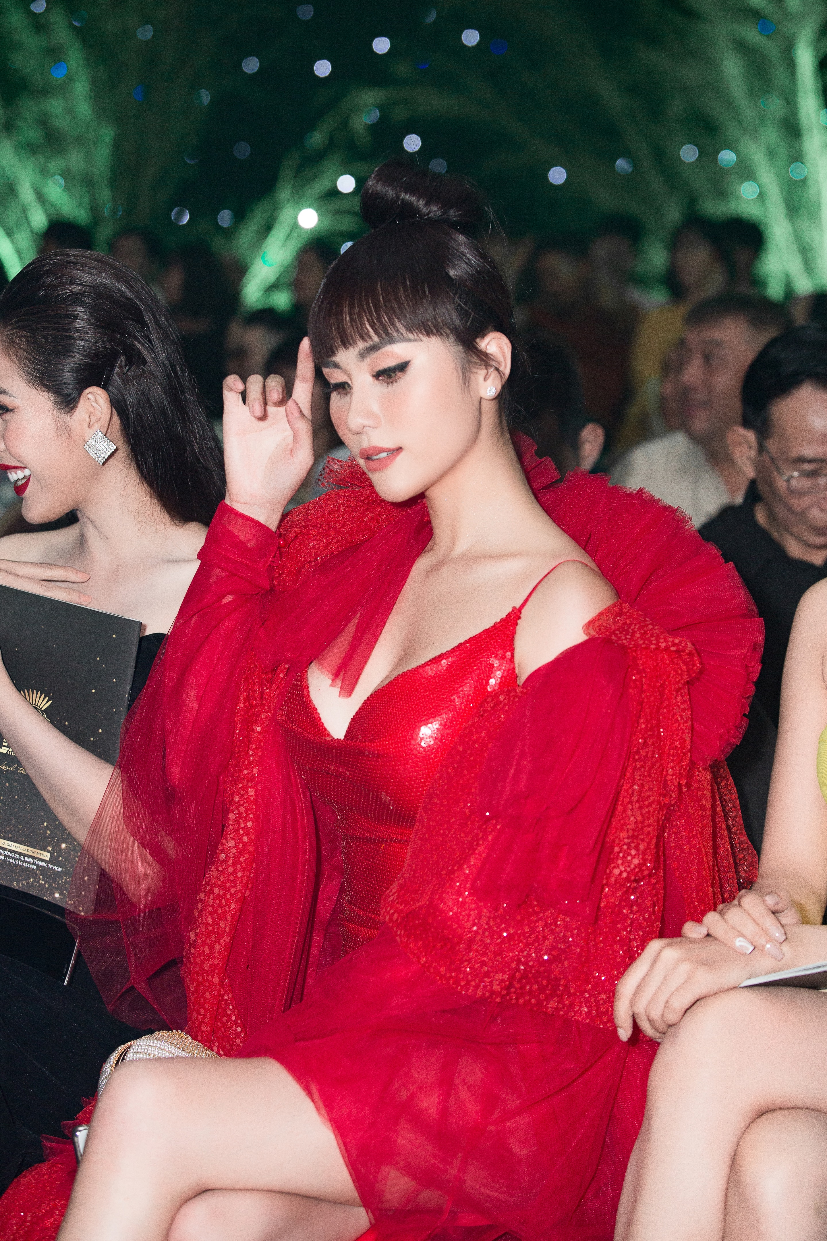 Tham dự một sự kiện tối ngày 14/9, giữa muôn vàn mỹ nhân khoe hương thắm sắc, á hậu Hoàng Hạnh nhanh chóng thu hút sự chú ý khi thả dáng trong chiếc váy đỏ nổi bật, có đường xẻ cao tít tắp khoe khéo đôi chân dài thon thả. Không những thế, cô nàng còn sử dụng chiếc áo khoác dáng rộng, được xử lý cầu kỳ nhằm khiến bản thân thêm phần nổi bật.