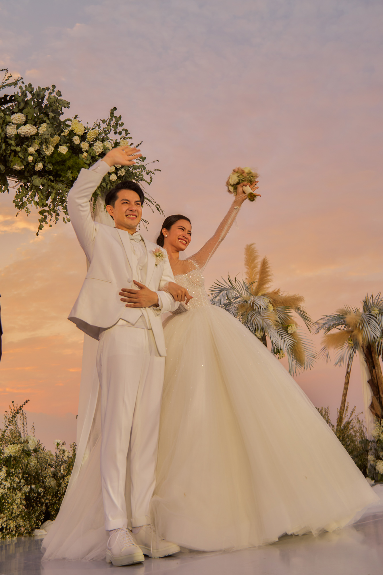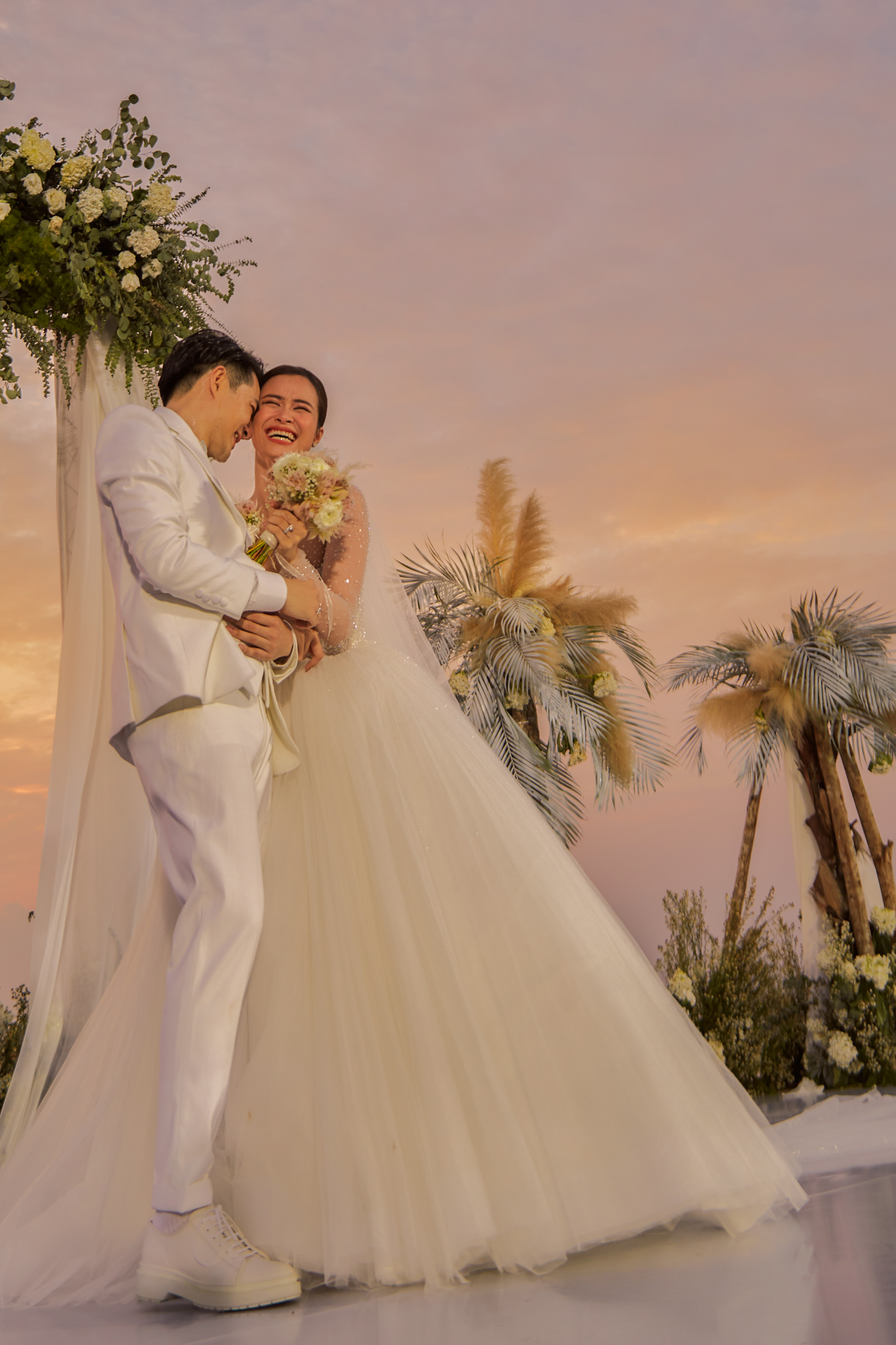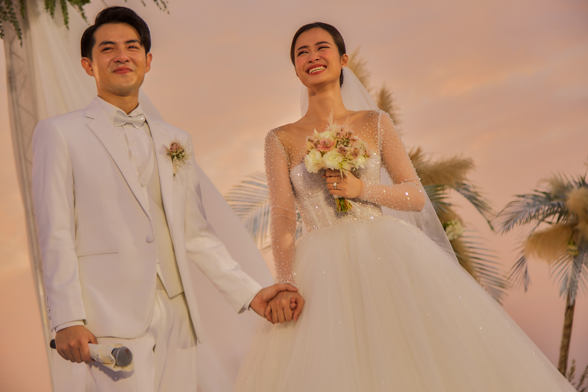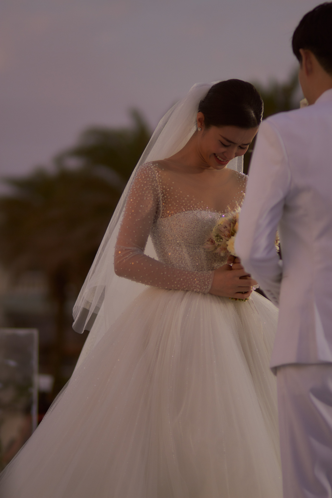 Ngoài ra, chiếc veil dài 5 mét mà Đông Nhi kết hợp với váy cưới chính tối nay cũng là điểm vô cùng ấn tượng khiến giới mộ điệu dành lời khen có cánh, vì giúp giọng ca “Ta là của nhau” thêm cuốn hút, dịu dàng và sang trọng khó ai bì kịp. Đồng thời, bộ trang phục cưới long lanh cũng thể hiện sự tinh tế của NTK.