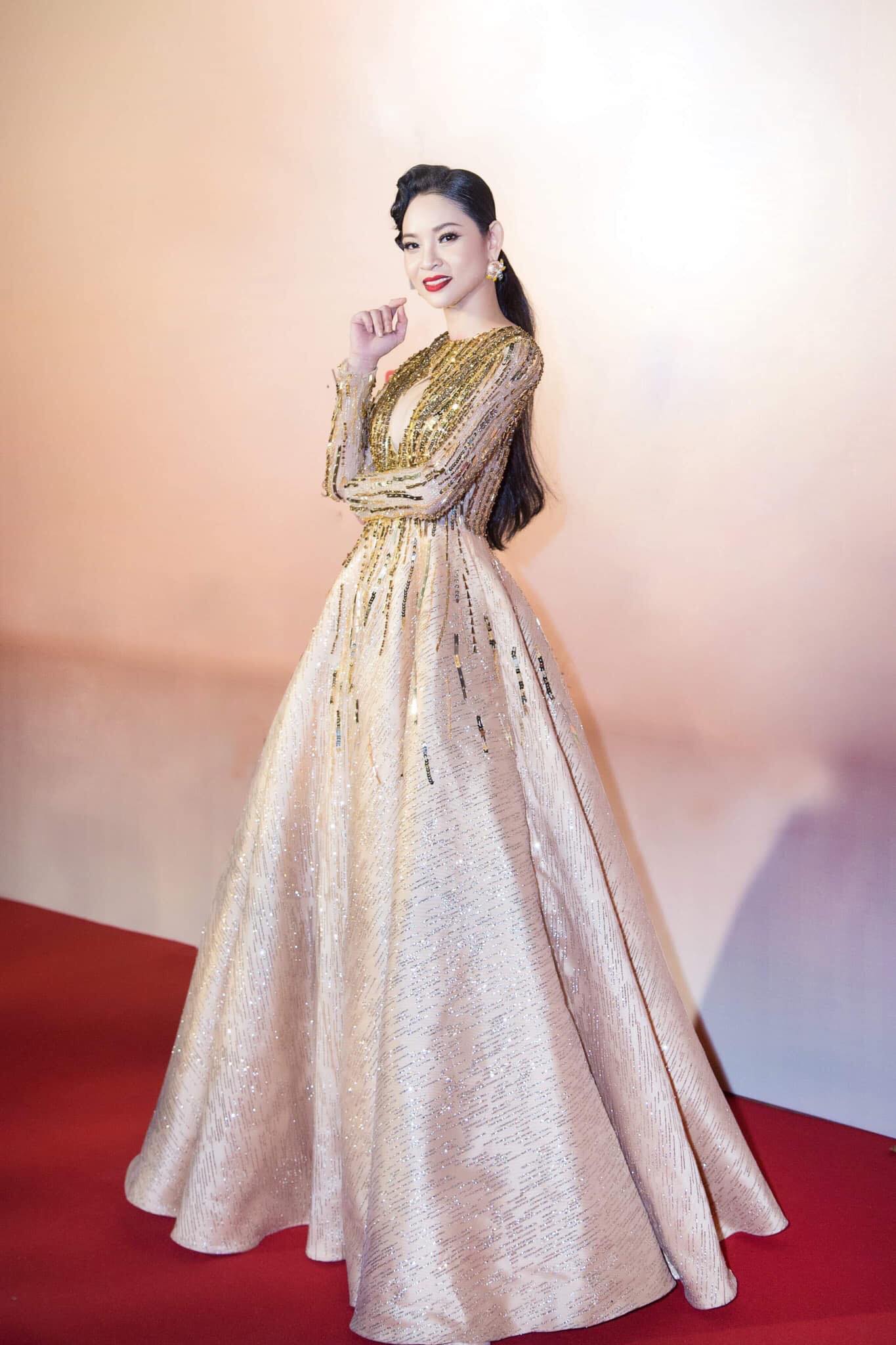 Mỹ nhân Thùy Trang tinh tế với chiếc đầm dạ hội vàng đính kết kim loại tỉ mỉ tinh tế
