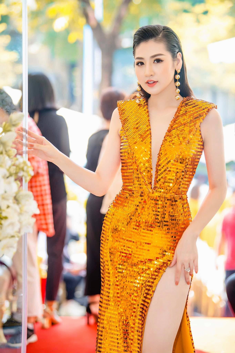 Á hậu Thanh Tú khoe đôi chân cực phẩm với chiếc váy ánh kim xẻ đùi cao vút