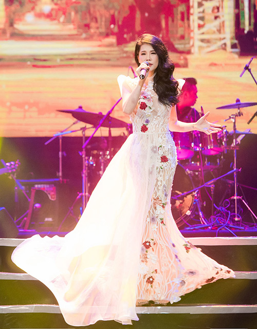 Thân hình cân đối cùng gu thẩm mỹ ổn định giúp nữ ca sĩ “Đêm nằm mơ phố” nhận được nhiều lời khen khi diện đầm voan mong manh, gợi cảm. Được biết cô cũng là khách hàng “ruột” của Hoàng Hải.