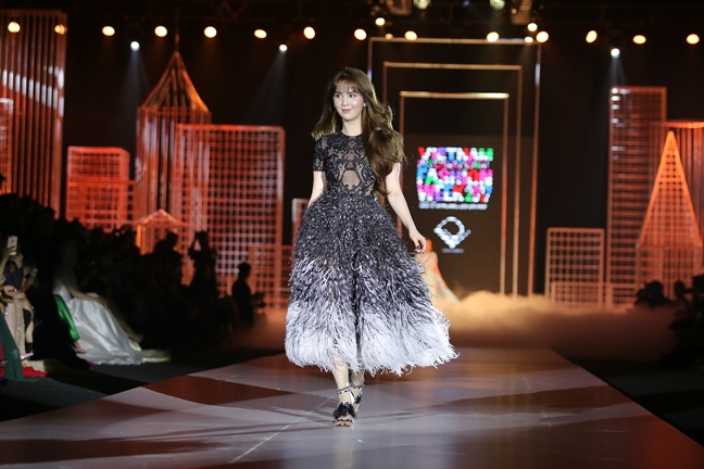 Trên sân khấu cuộc thi nhan sắc trong nước cũng không hề “vắng bóng” những chiếc đầm lông vũ kiêu sa.