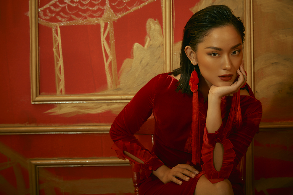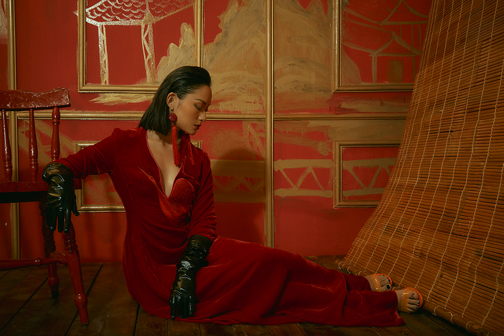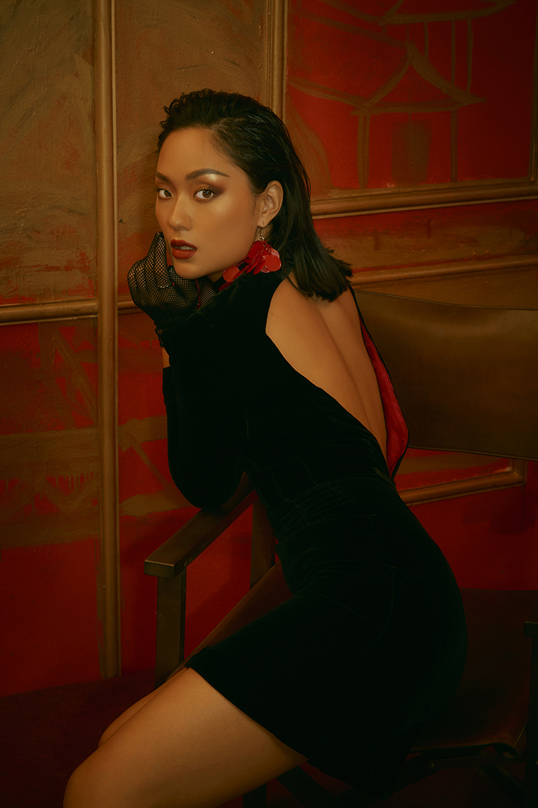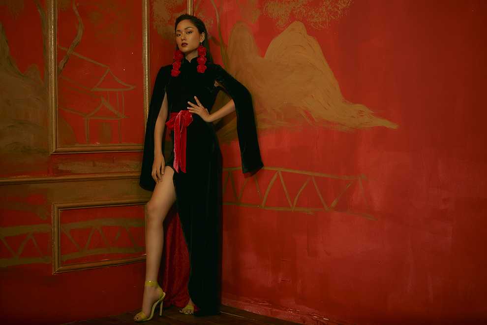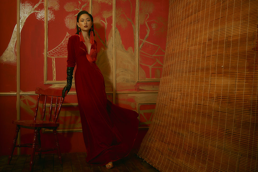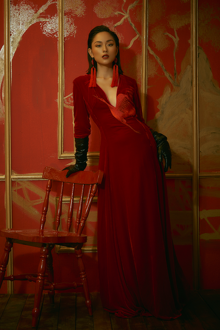 Đầm nhung đỏ thắm vô cùng tao nhã và mặn mà