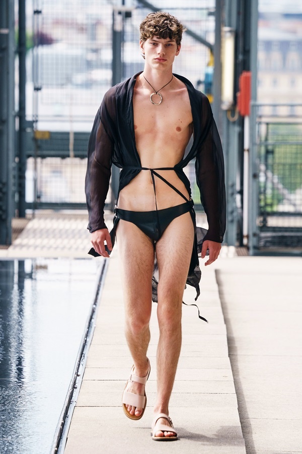 Các người mẫu diễn cho BST Xuân Hè 2020 dành cho nam của nhà thiết kế Ludovic de Saint Sernin khiến người xem “choáng ngợp” trước nhiều màn khỏa thân gần như thấy hết trên sàn catwalk thuộc khuôn khổ Tuần lễ thời trang Paris, bên cạnh các thiết kế chính dành cho nam giới cũng xen kẽ các trang phục mỏng tang dành cho nữ giới.