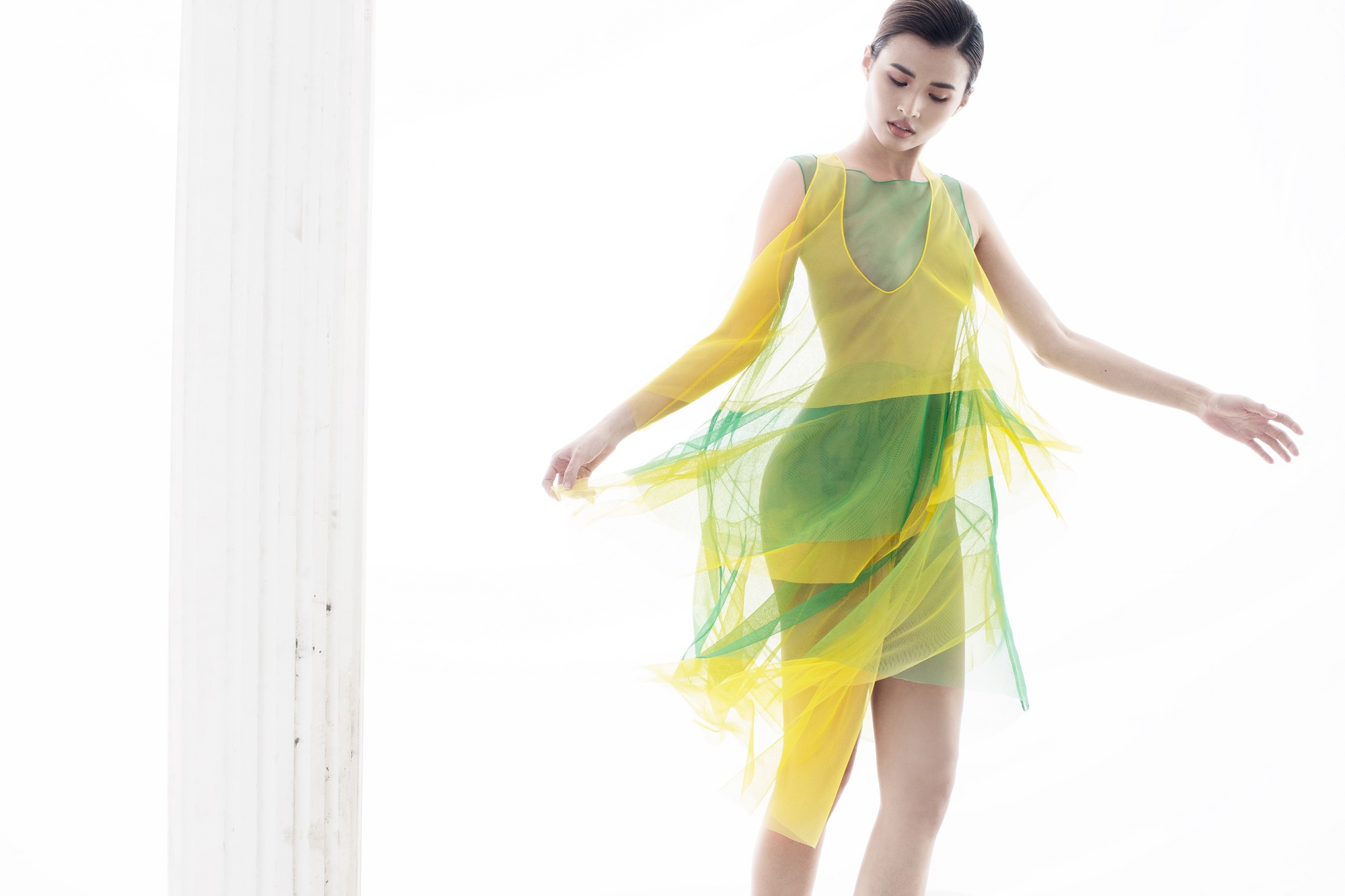 Trong loạt ảnh “chào sân”, Đỗ Mạnh Cường khắc họa không gian một miền biển trong tiết trời mùa Hạ với những cô gái mỏng manh khoe phong cách nữ tính, thanh lịch, trẻ trung. Họ cũng được ví von như những đóa hoa mùa hạ của miền nhiệt đới đang độ khoe sắc.