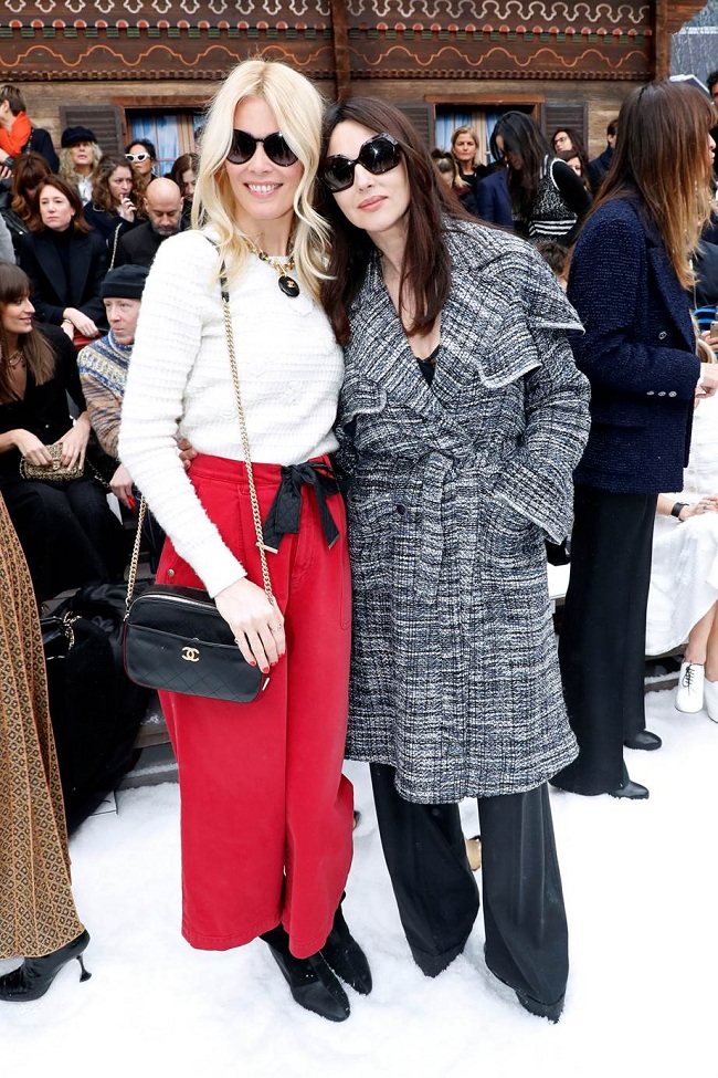 Siêu mẫu Claudia Schiffer và Monica Bellucci tay bắt mặt mừng khi găp nhau tại Chanel Show