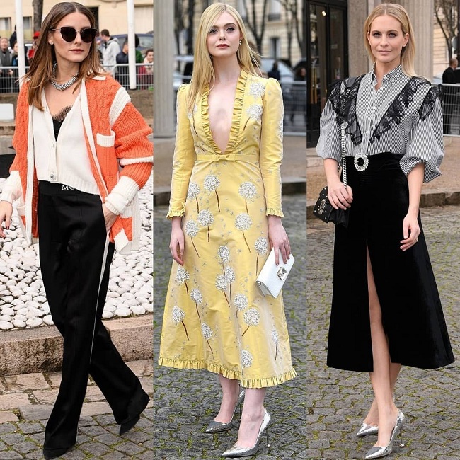 Tại show Miu Miu còn có sự tham gia của fashionista nức danh làng thời trang Olivia Palermo (trái) và chị gái siêu mẫu Cara Delevingne - Poppy Delevingne
