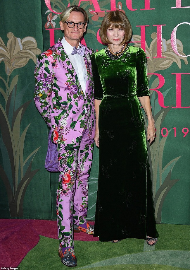 Tổng biên tập Anna Wintour trong chiếc váy nhung màu xanh lá cây, phù hợp với ý nghĩa mà buổi lễ trao giải mang đến