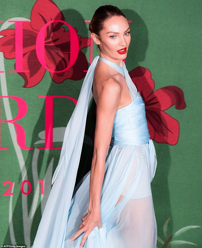 Bà mẹ hai con siêu mẫu Candice Swanepoel thướt tha trong chiếc váy xanh blue xuyên thấu
