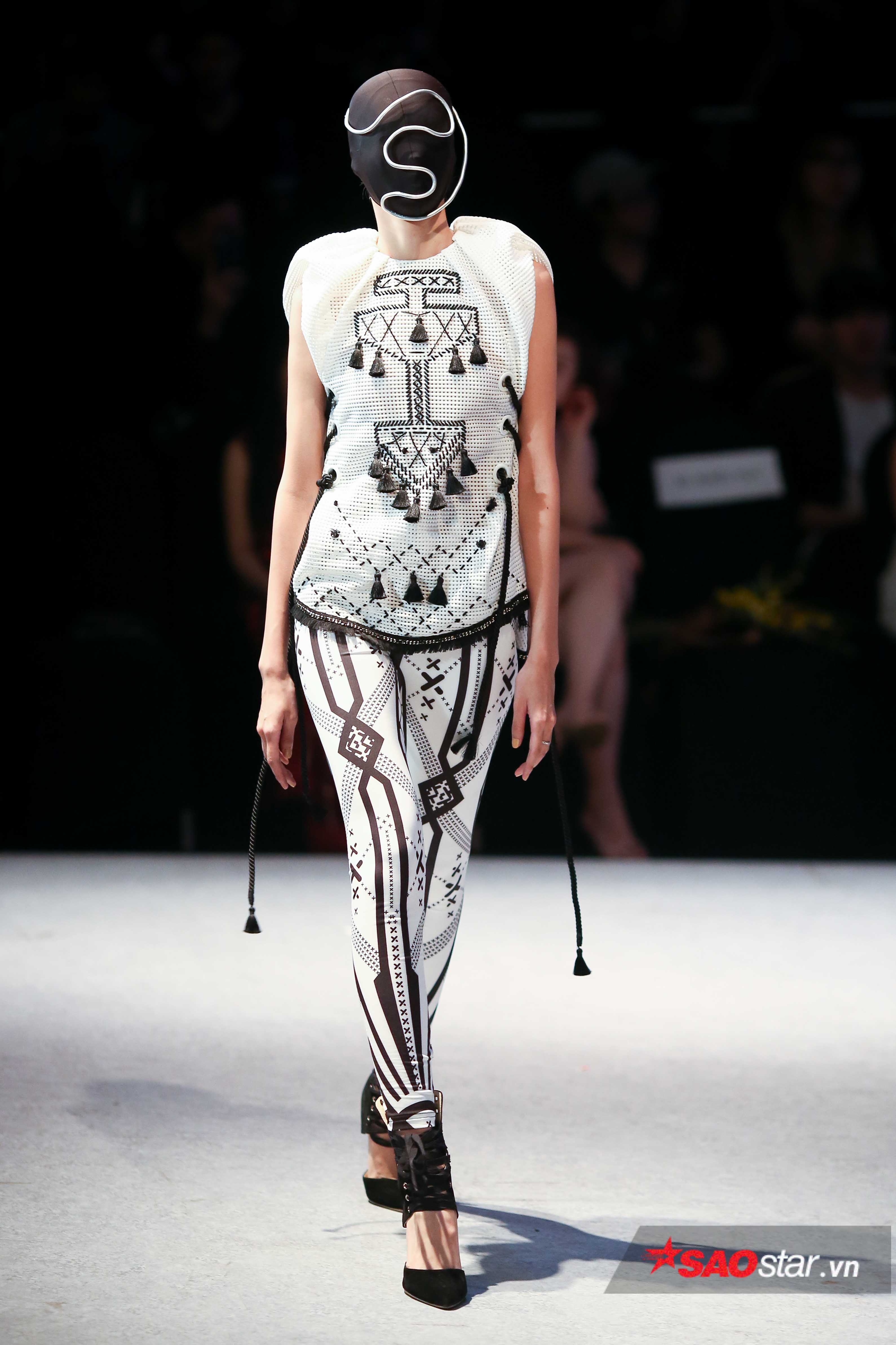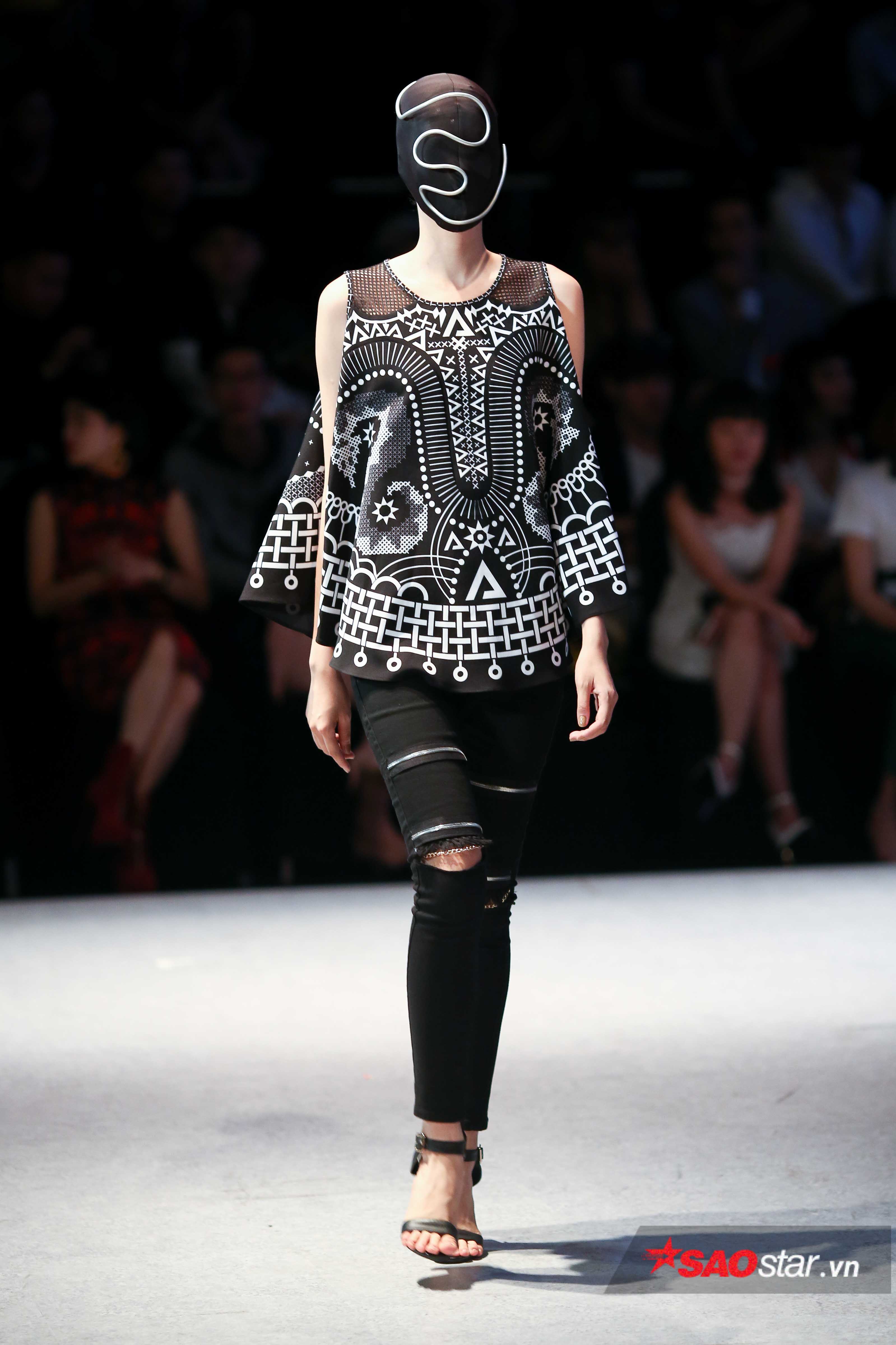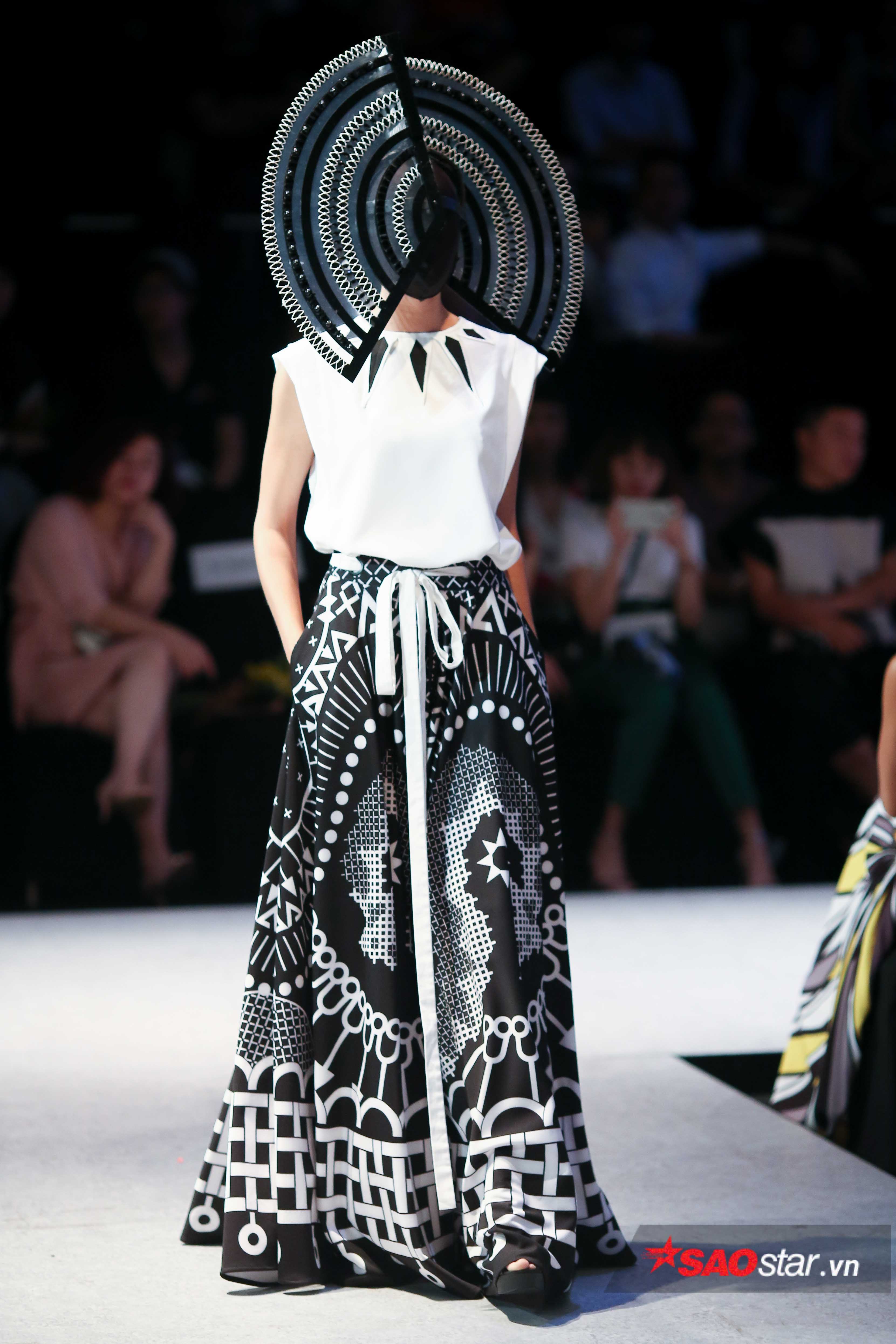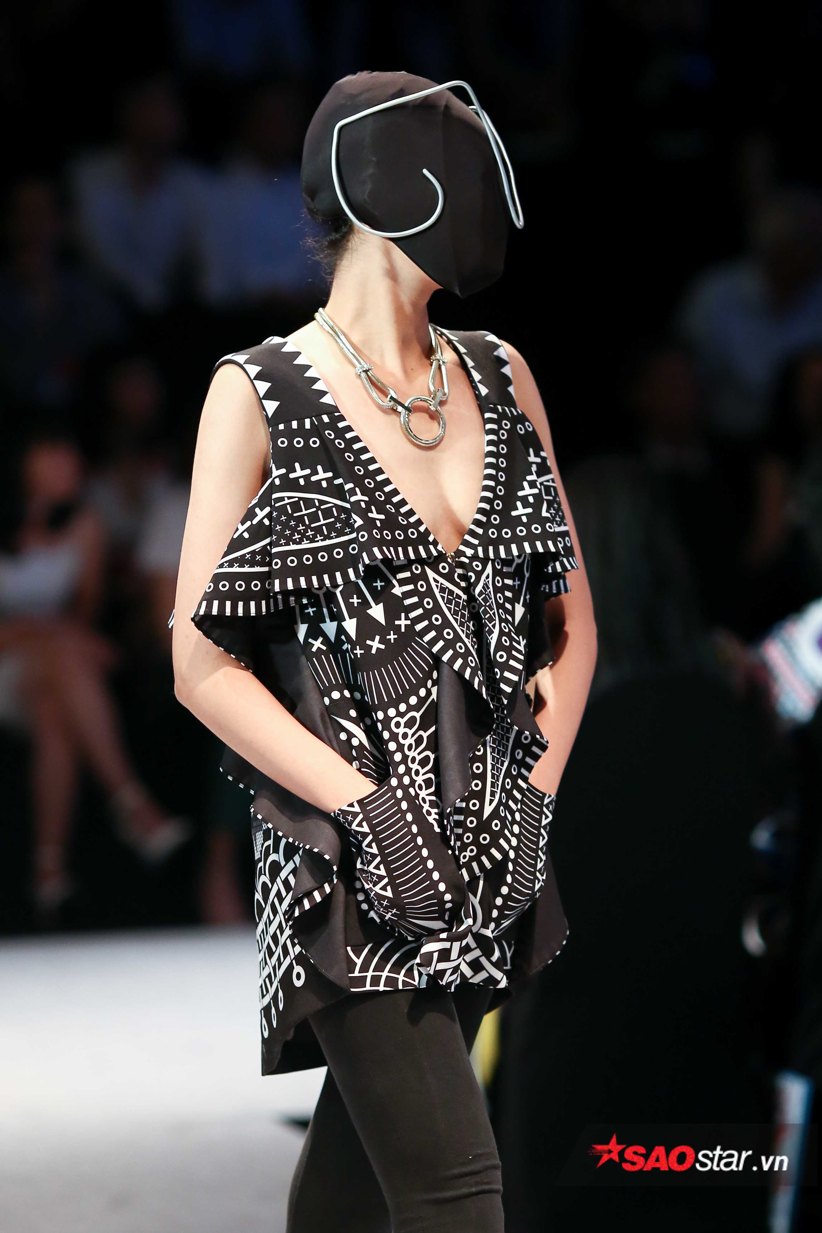 Họa tiết hình tam giác đội đầu phối cùng một trong những trang phục cầu kì nhất của BST.
