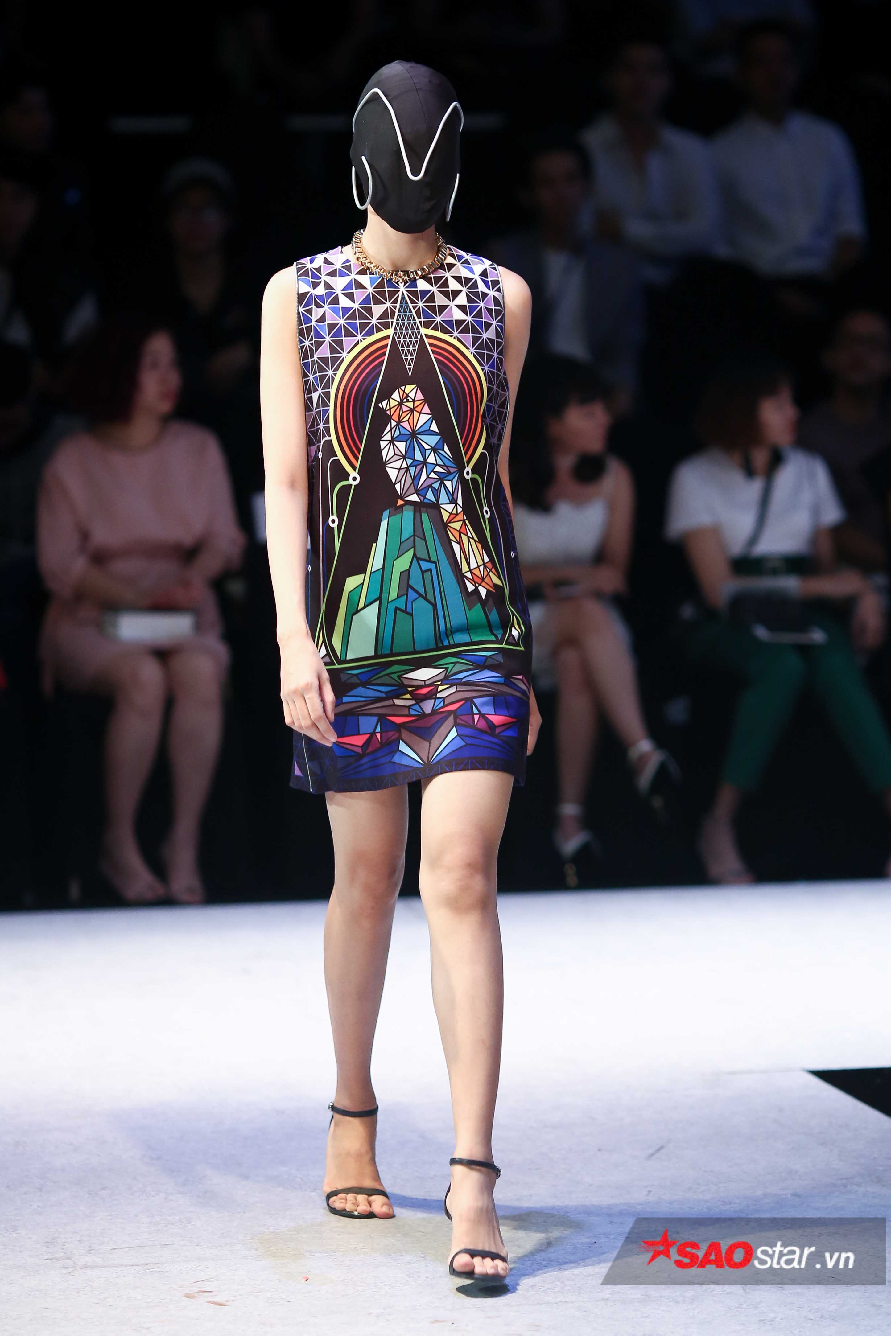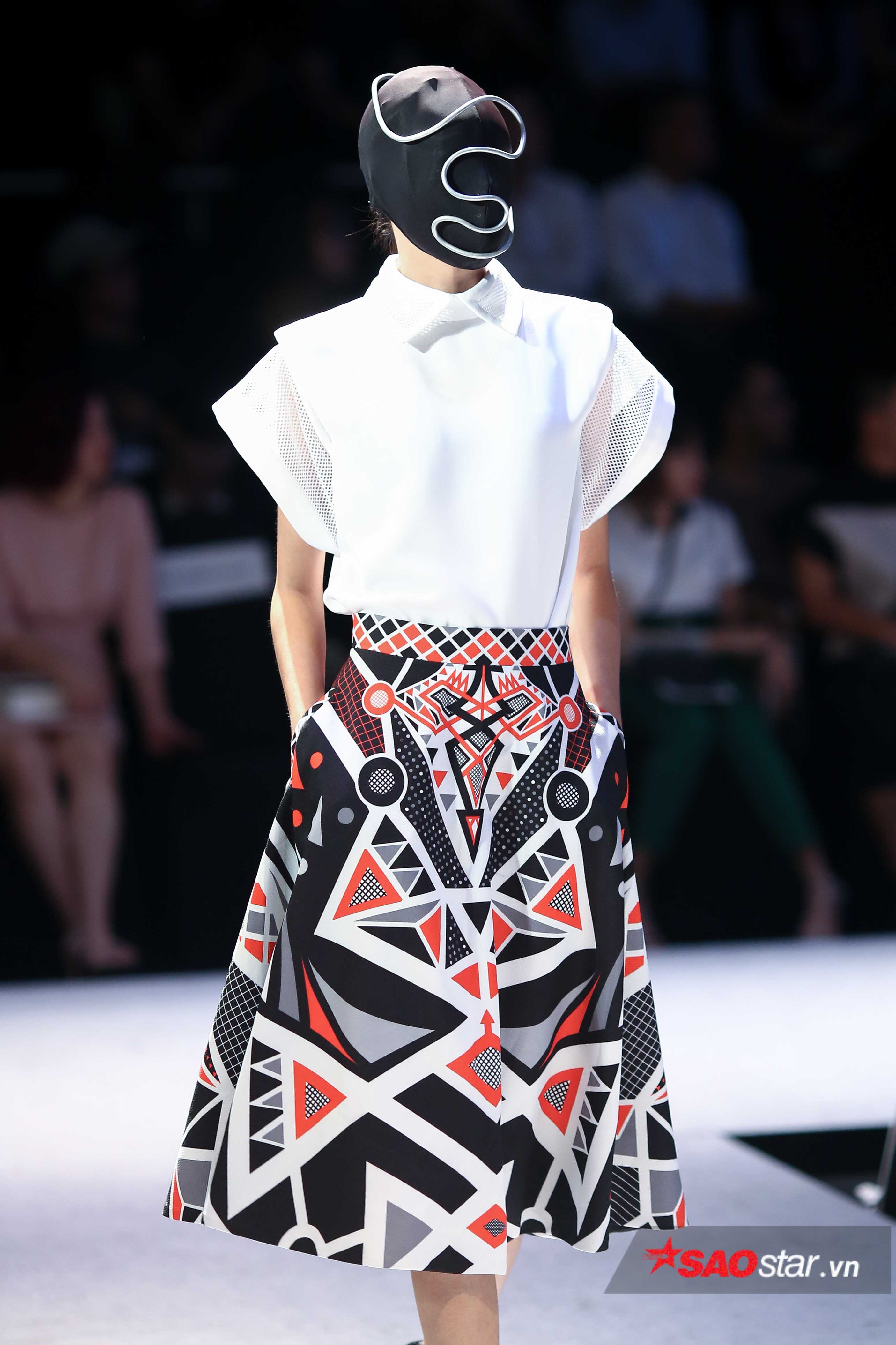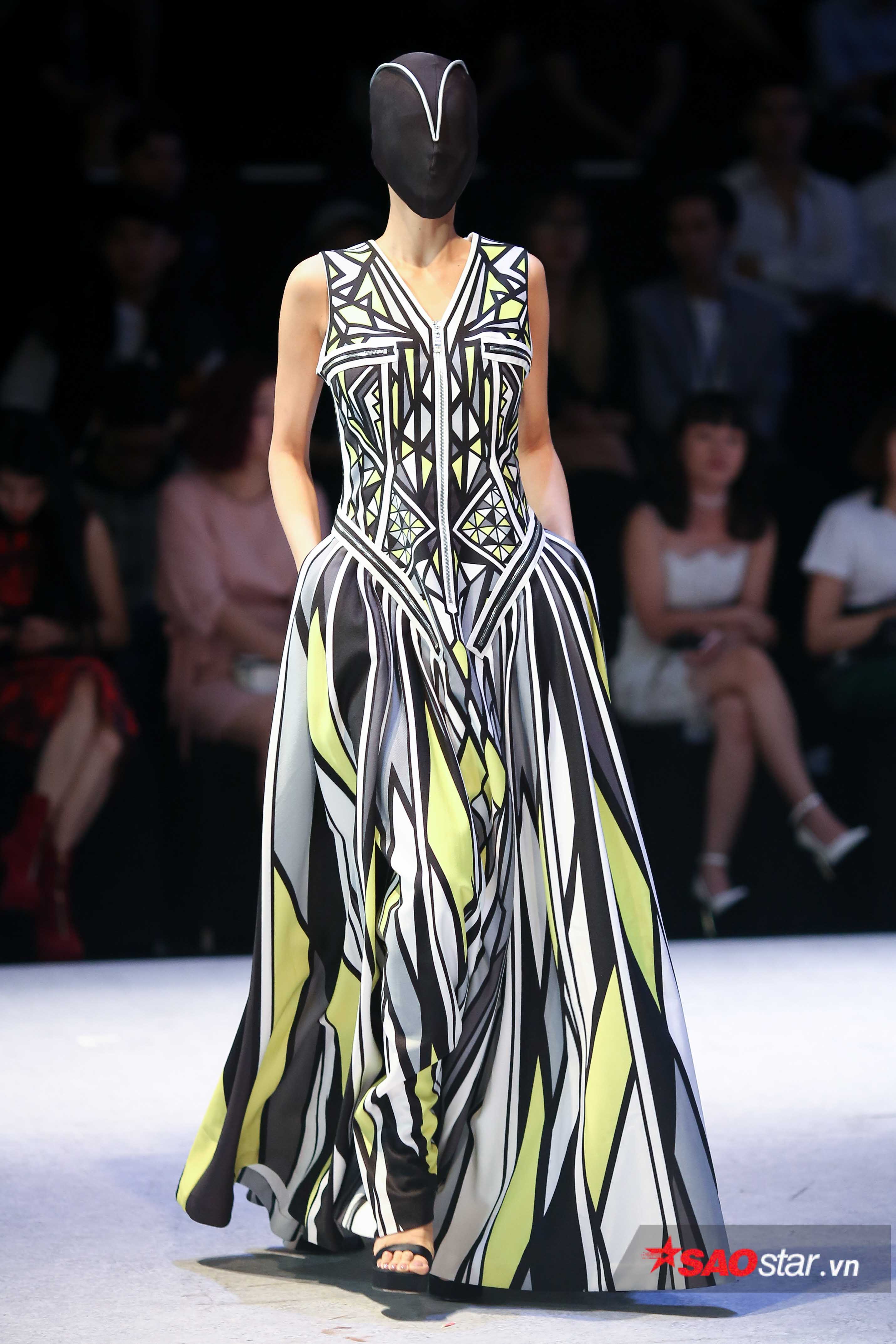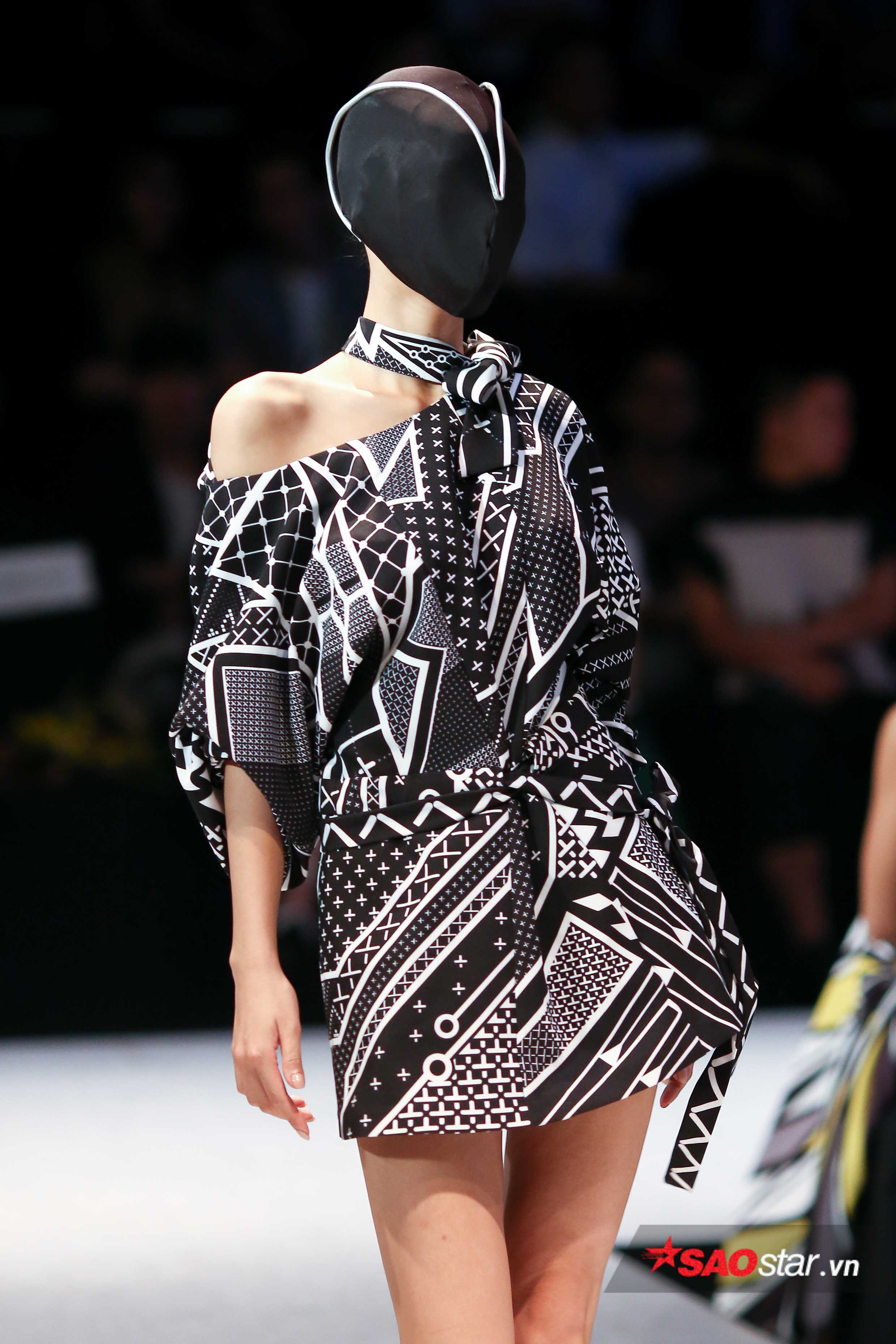 Họa tiết hình tam giác đội đầu phối cùng một trong những trang phục cầu kì nhất của BST.
