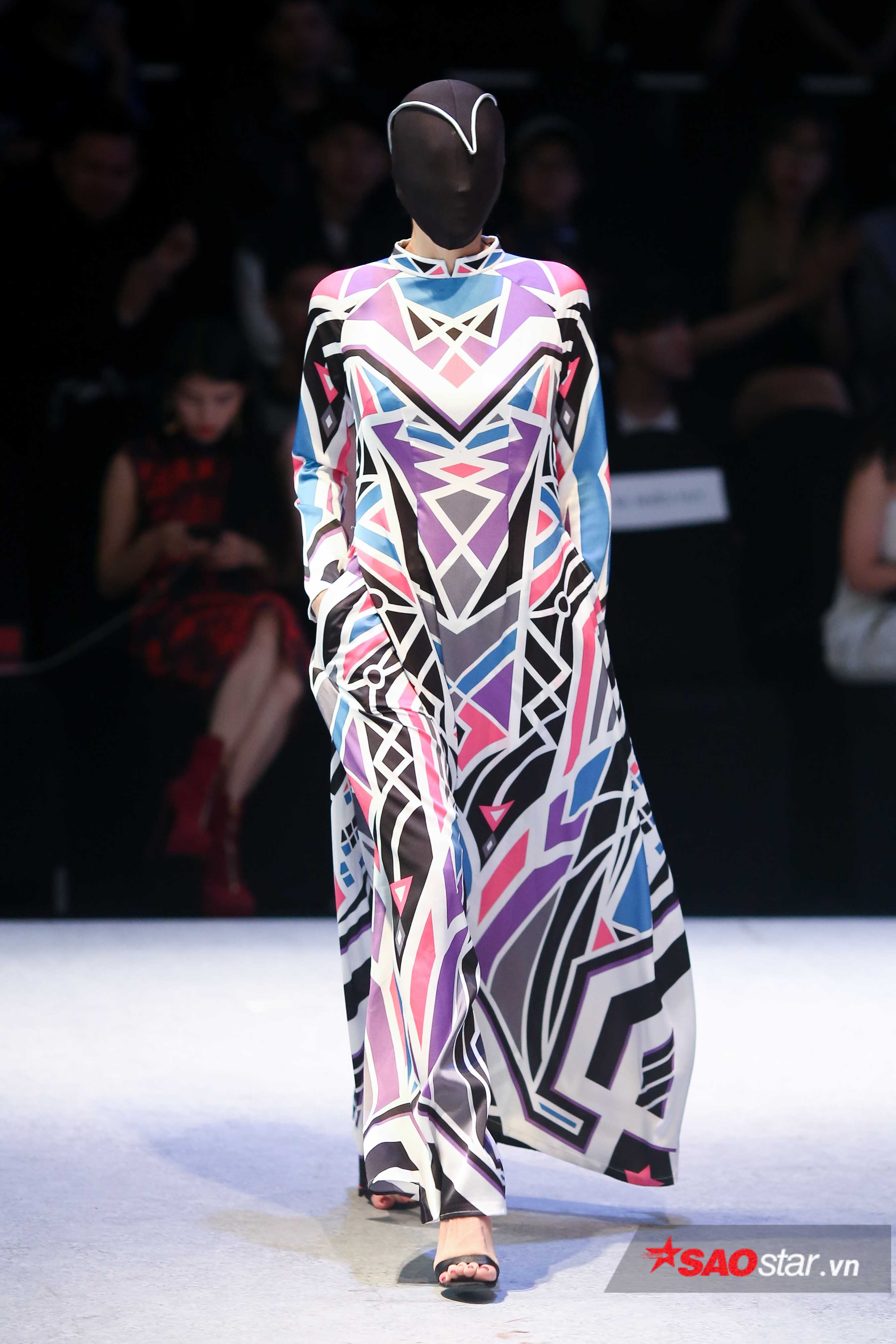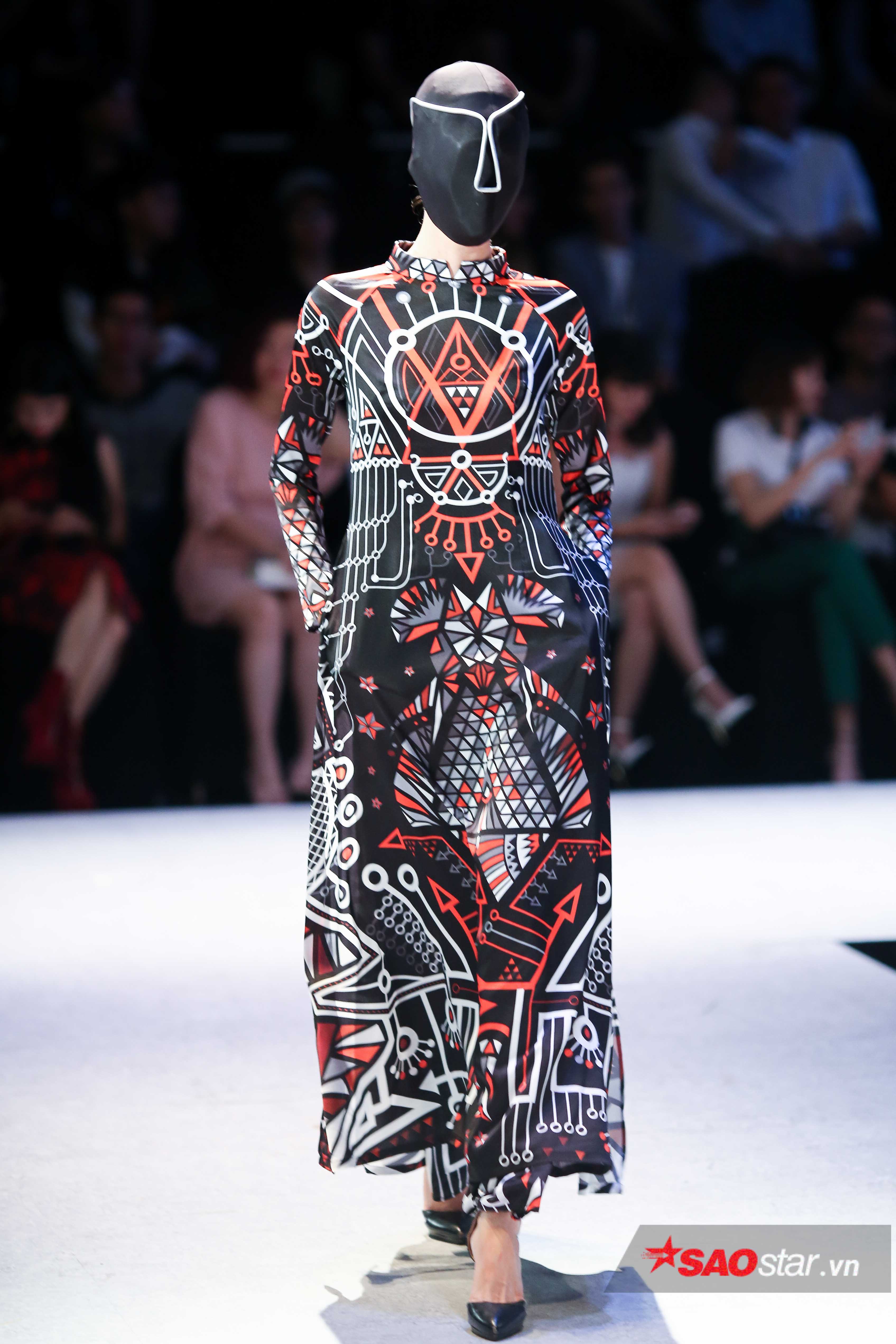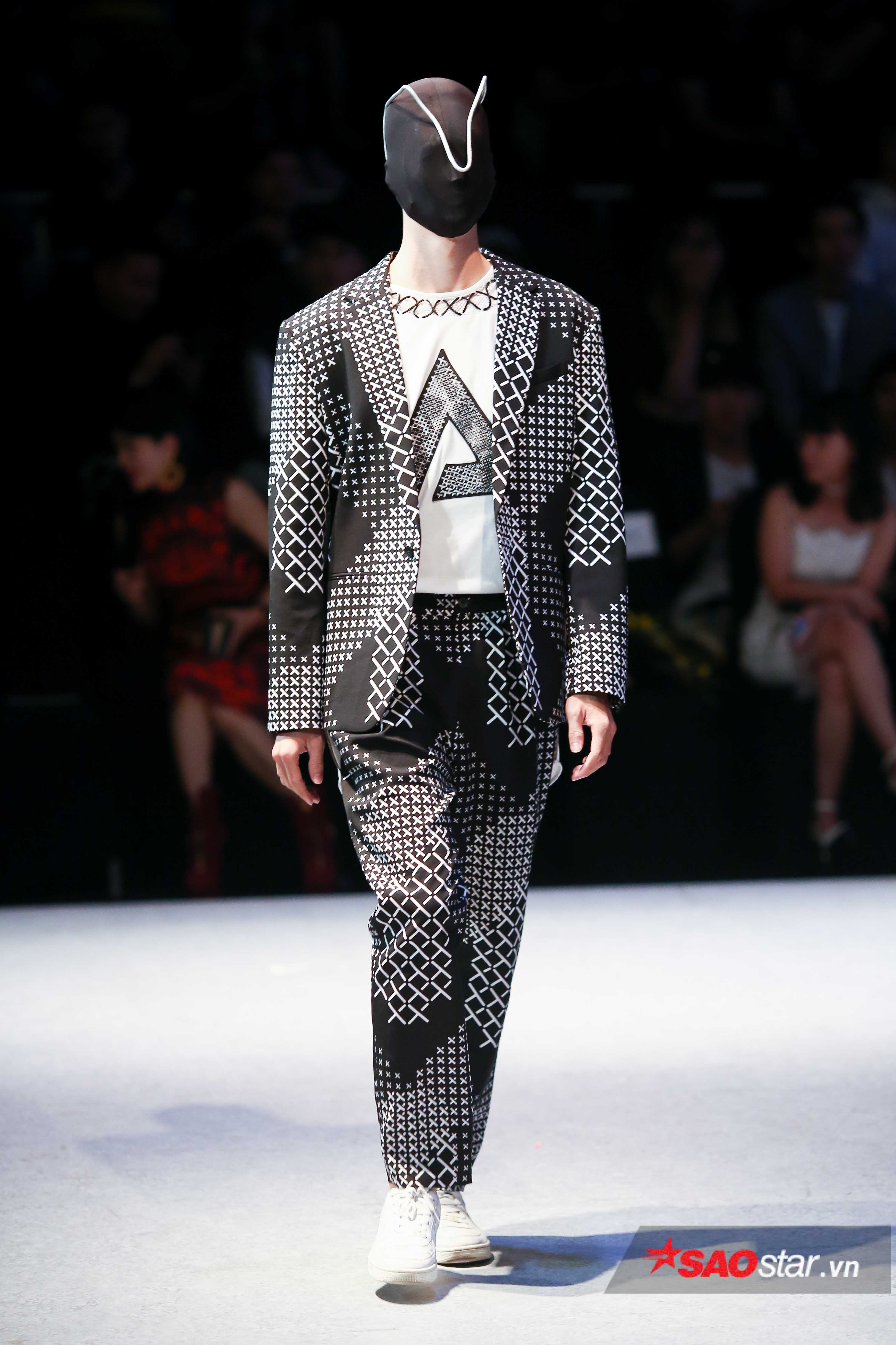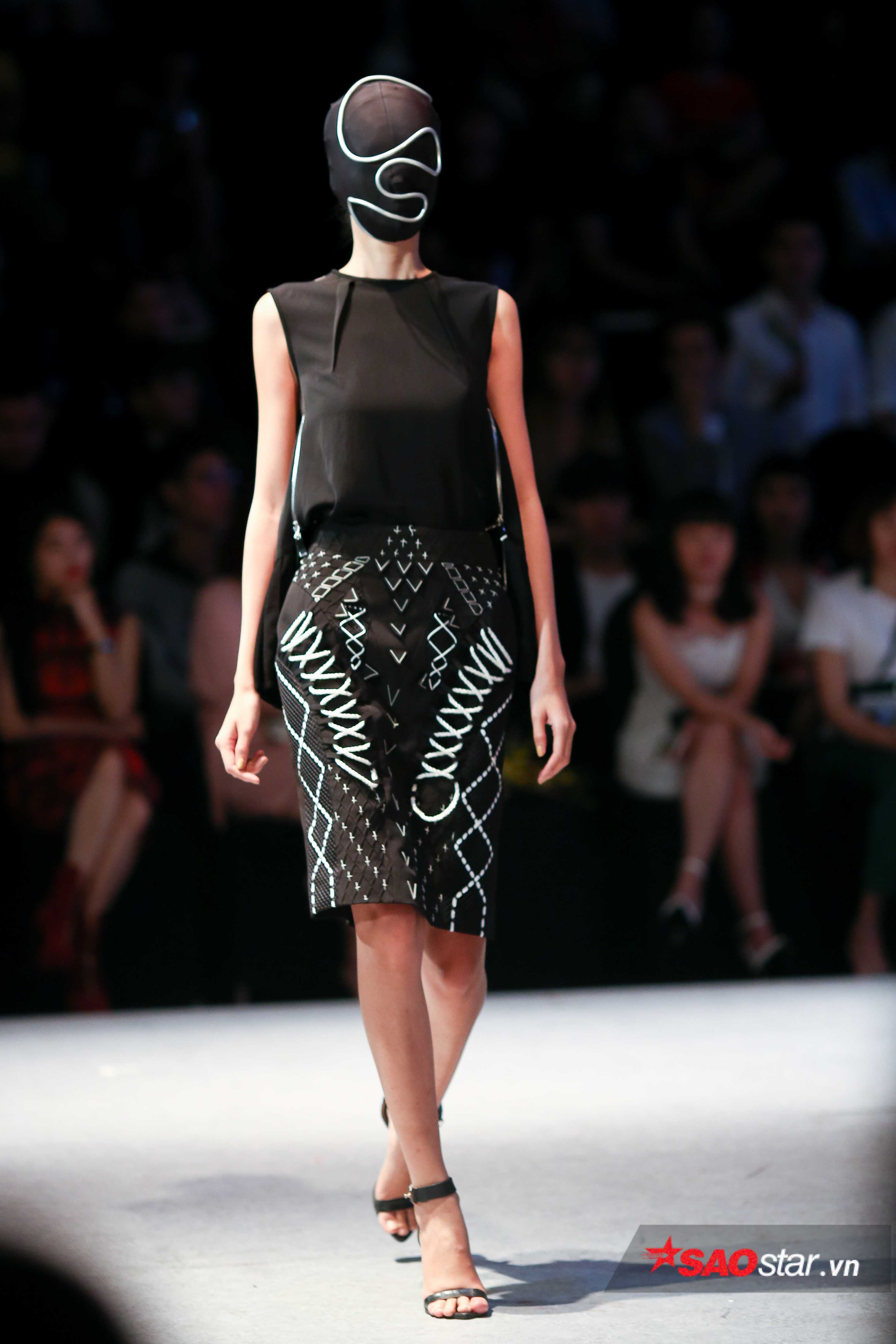 Họa tiết hình tam giác đội đầu phối cùng một trong những trang phục cầu kì nhất của BST.