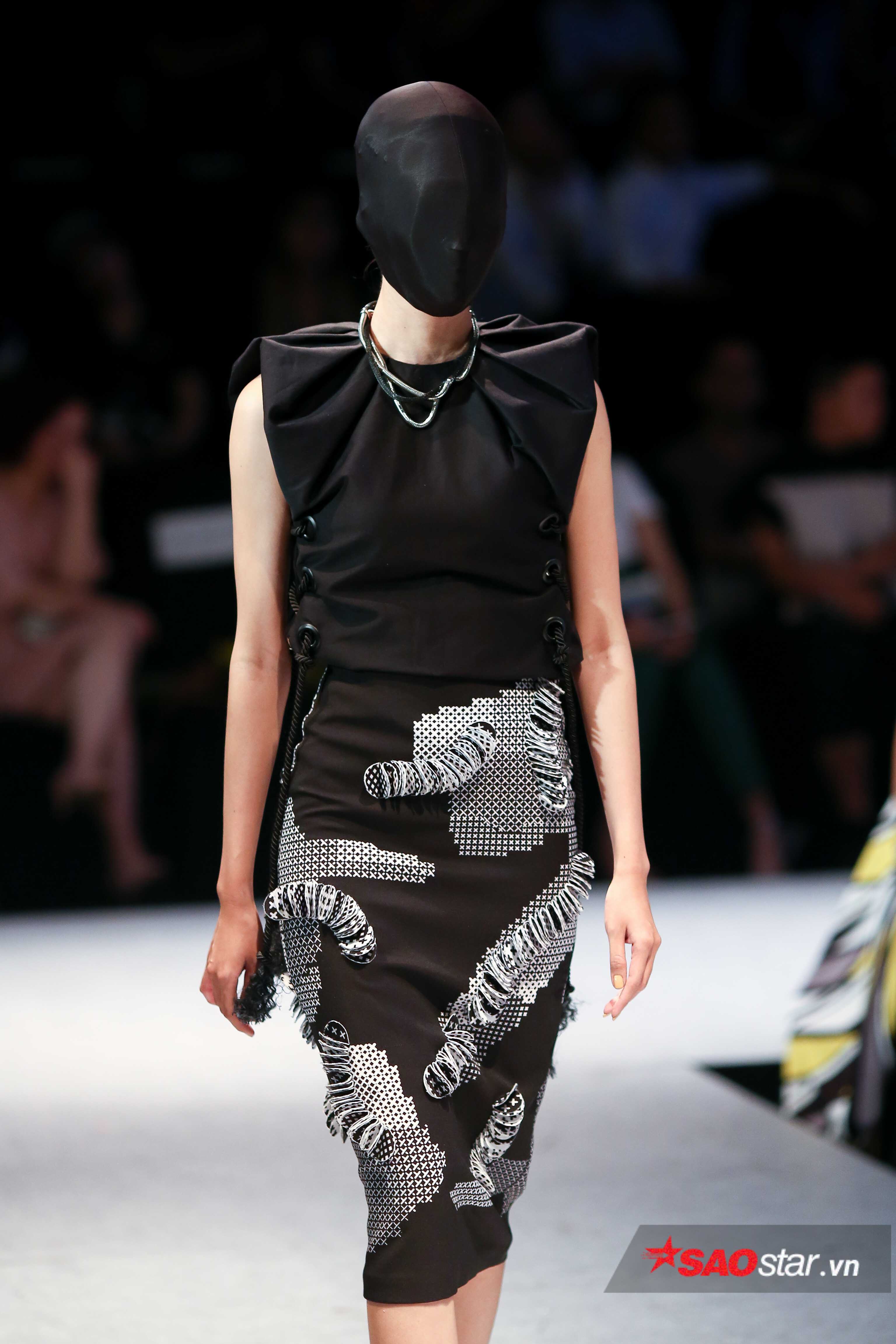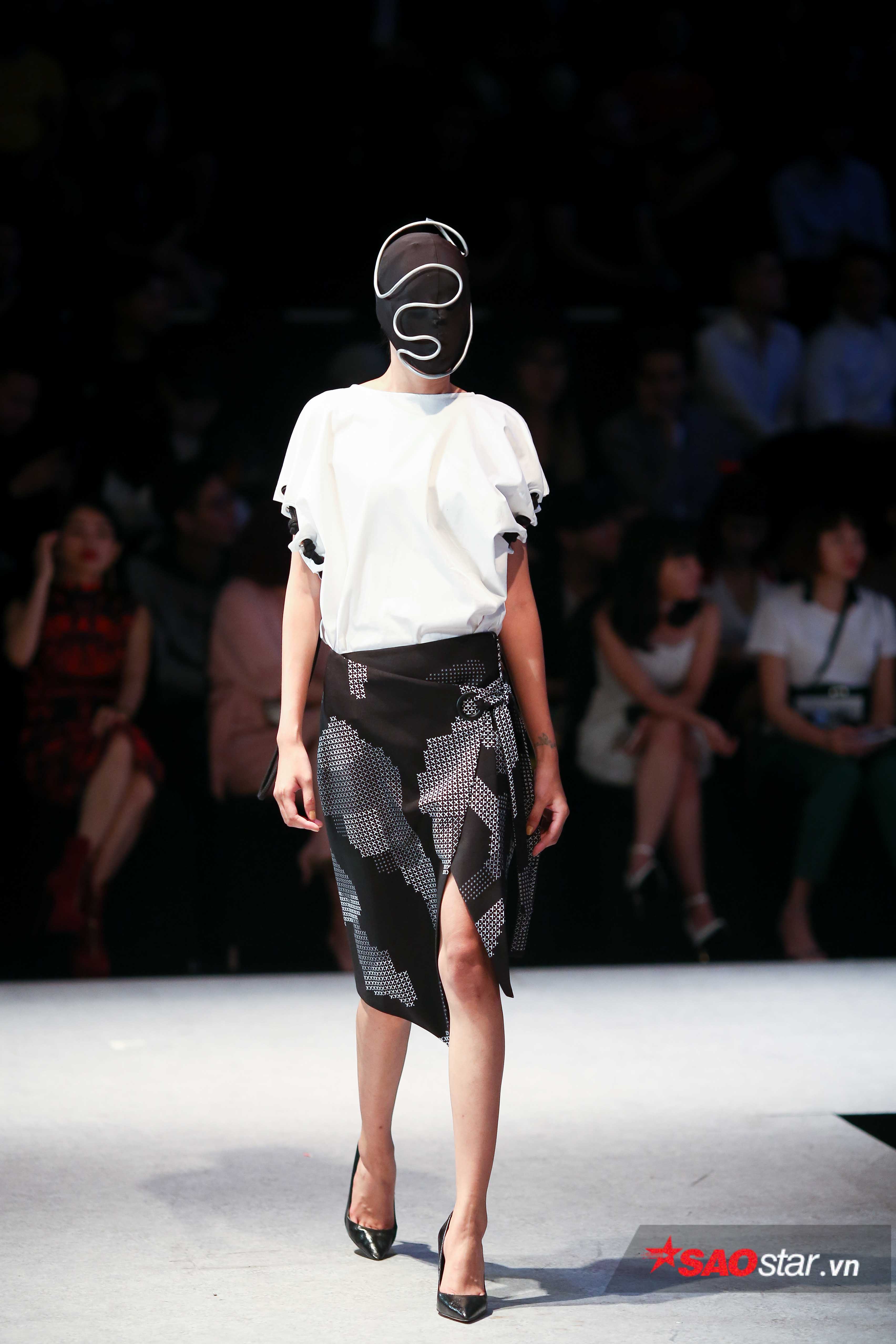 Những tưởng nhàm chán khi hầu như chỉ sử dụng hai gam màu đen - trắng, tuy nhiên, chất liệu cùng họa tiết đa dạng, nổi bật tạo nên sức hút khó cưỡng cho BST này.