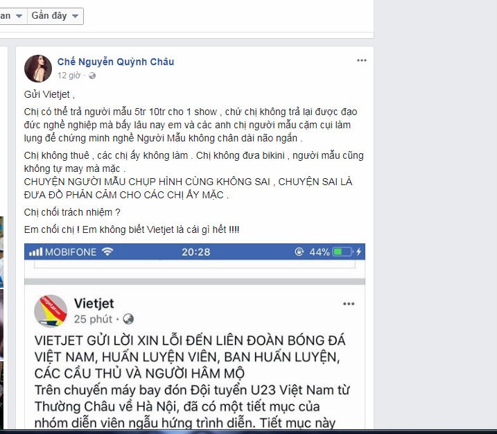 Người mẫu Quỳnh Châu chỉ trích và ngầm đổ lỗi cho hãng hàng không VietJet Air. Chân dài khẳng định dàn người mẫu chụp hình không sai.