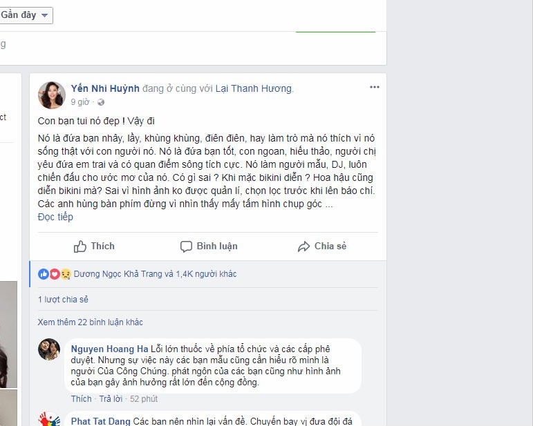 Người mẫu Huỳnh Yến Nhi bênh vực đồng nghiệp bằng một câu “Trước khi chỉ trích người khác thì nhìn lại bản thân mình nhé”.
