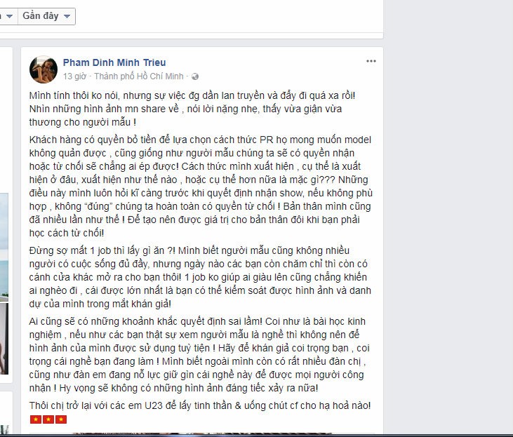 Chưa kể dòng trạng thái của chân dài cũng gây bức xúc, tranh cãi trong dư luận.