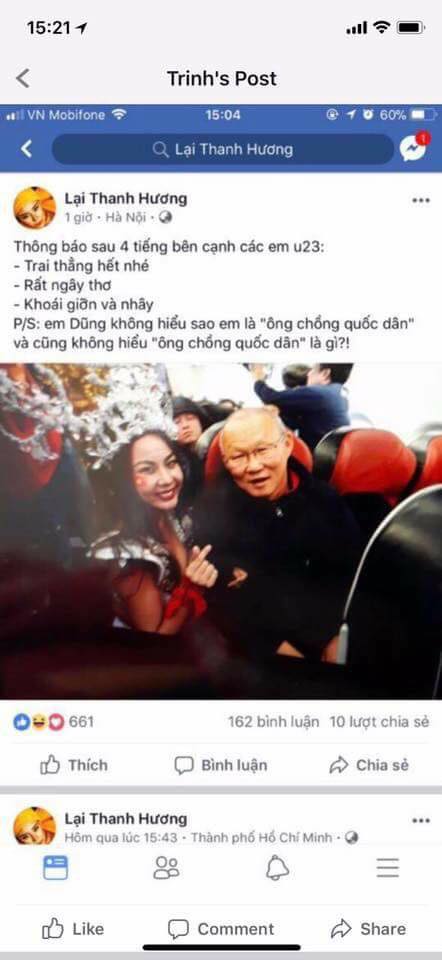 Tuy nhiên trái ngược những lời chỉ trích từ hàng chục triệu fan bóng đá nước nhà, Hoàng Thùy, Mâu Thủy và một số chân dài khác đã đứng ra bênh vực lại Thanh Hương với quan điểm người mẫu thực ra cũng chỉ là người bị hại.
