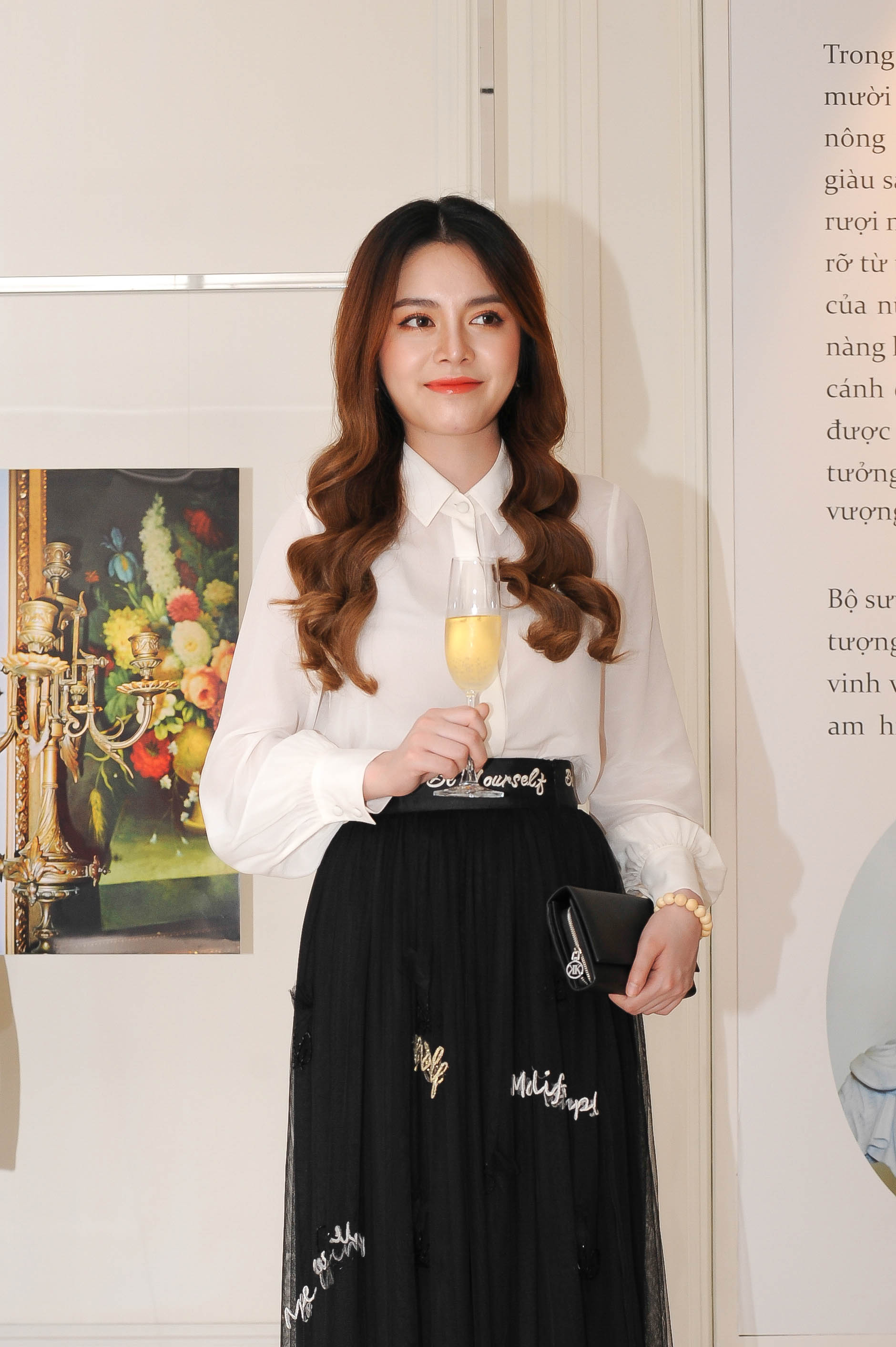 Xuất hiện trong sự kiện thời trang mới đây, Cao Diệp Anh phối chân váy trẻ trung cùng áo sơ mi lụa cách điệu.