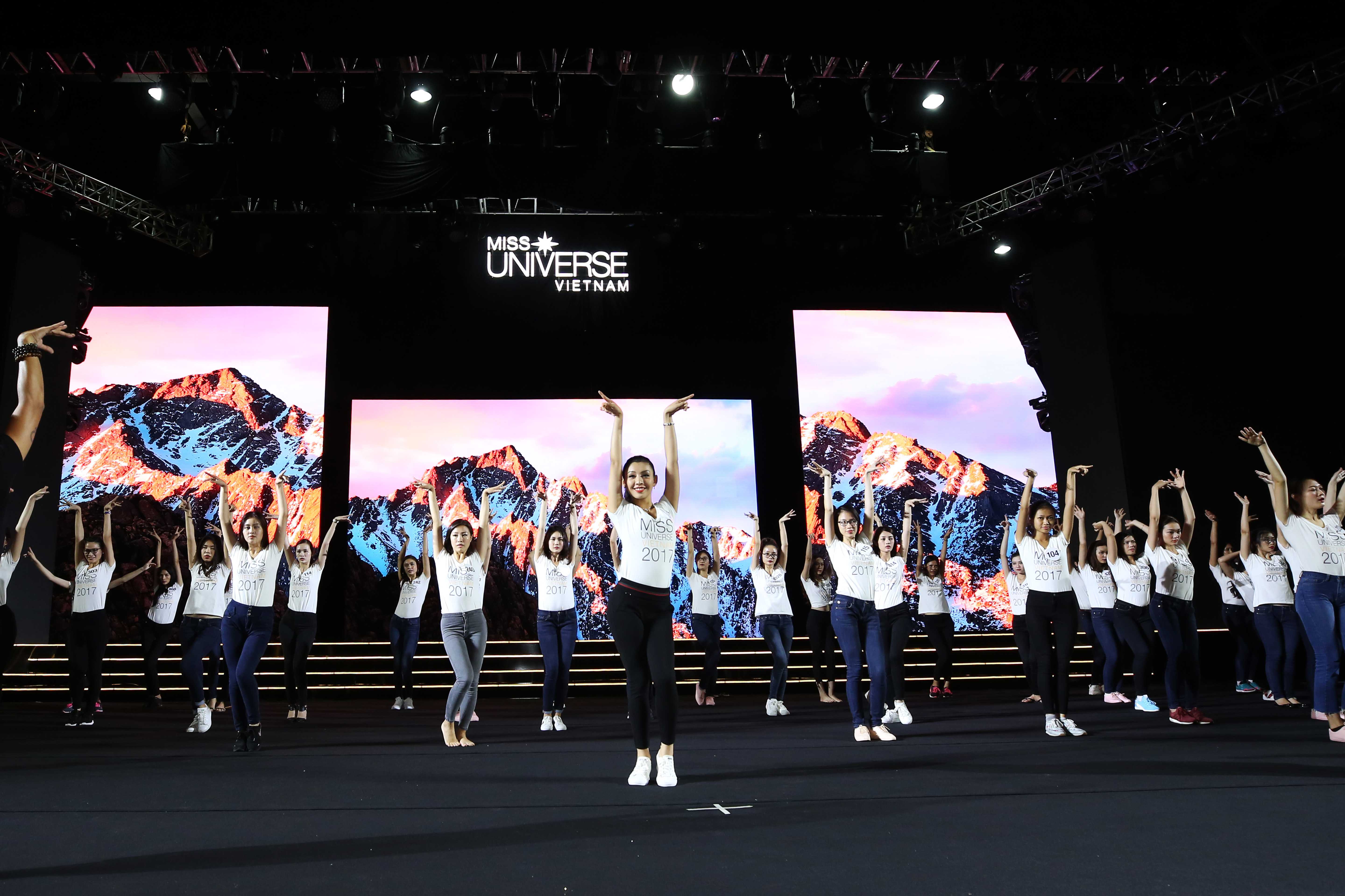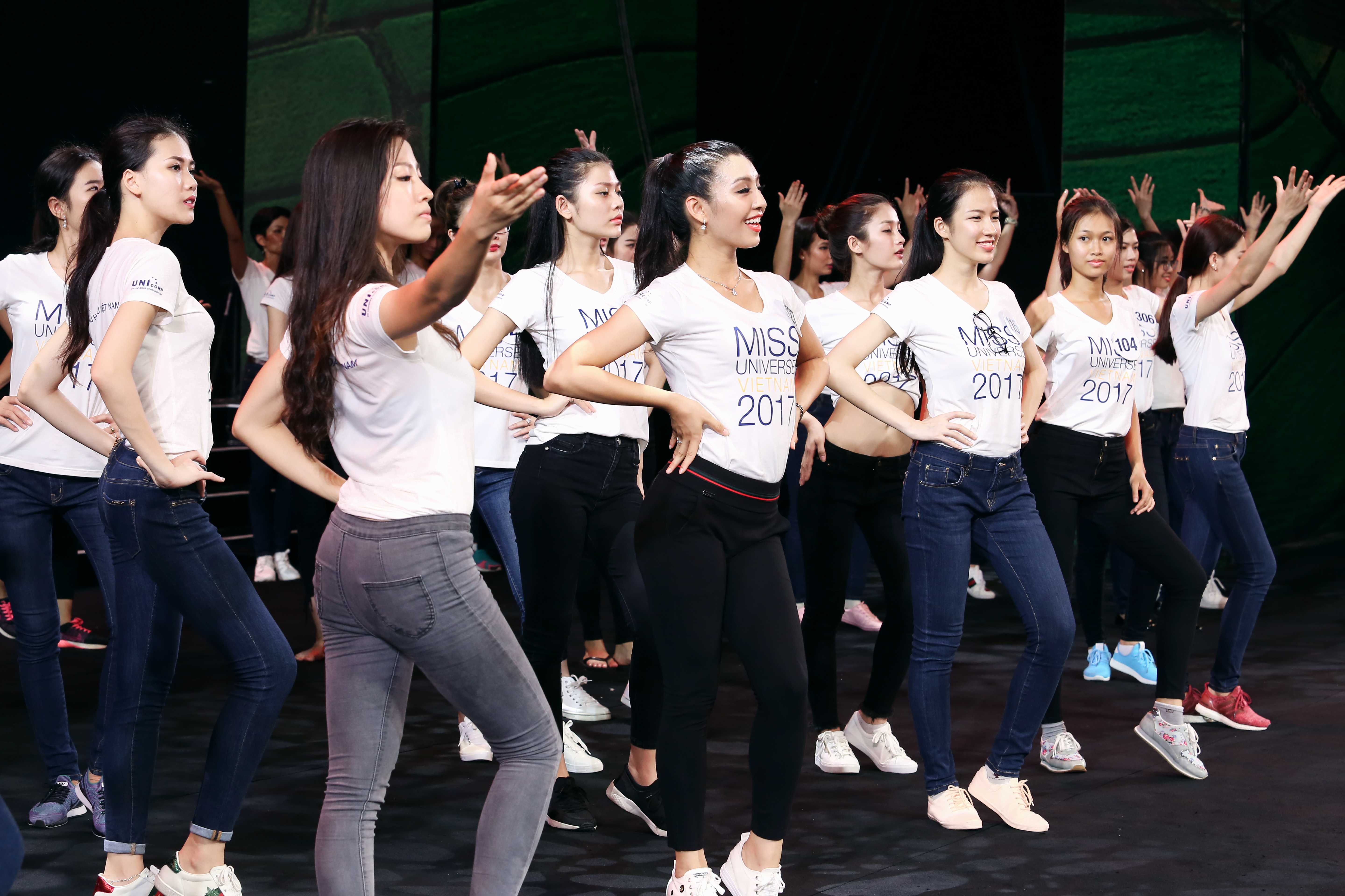 Để chuẩn bị cho đêm bán kết (04/11) sắp tới, các thí sinh Hoa hậu Hoàn vũ Việt Nam 2017 đang tích cực ráo riết tập luyện nhằm mang đến cho ban giám khảo và khán giả những màn trình diễn xuất sắc nhất.
