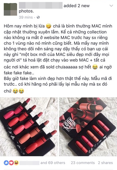 Thế nhưng, theo như chia sẻ của một cô gái là tín đồ dòng son MAC hình viên đạn này thì đây chính là… hàng fake.