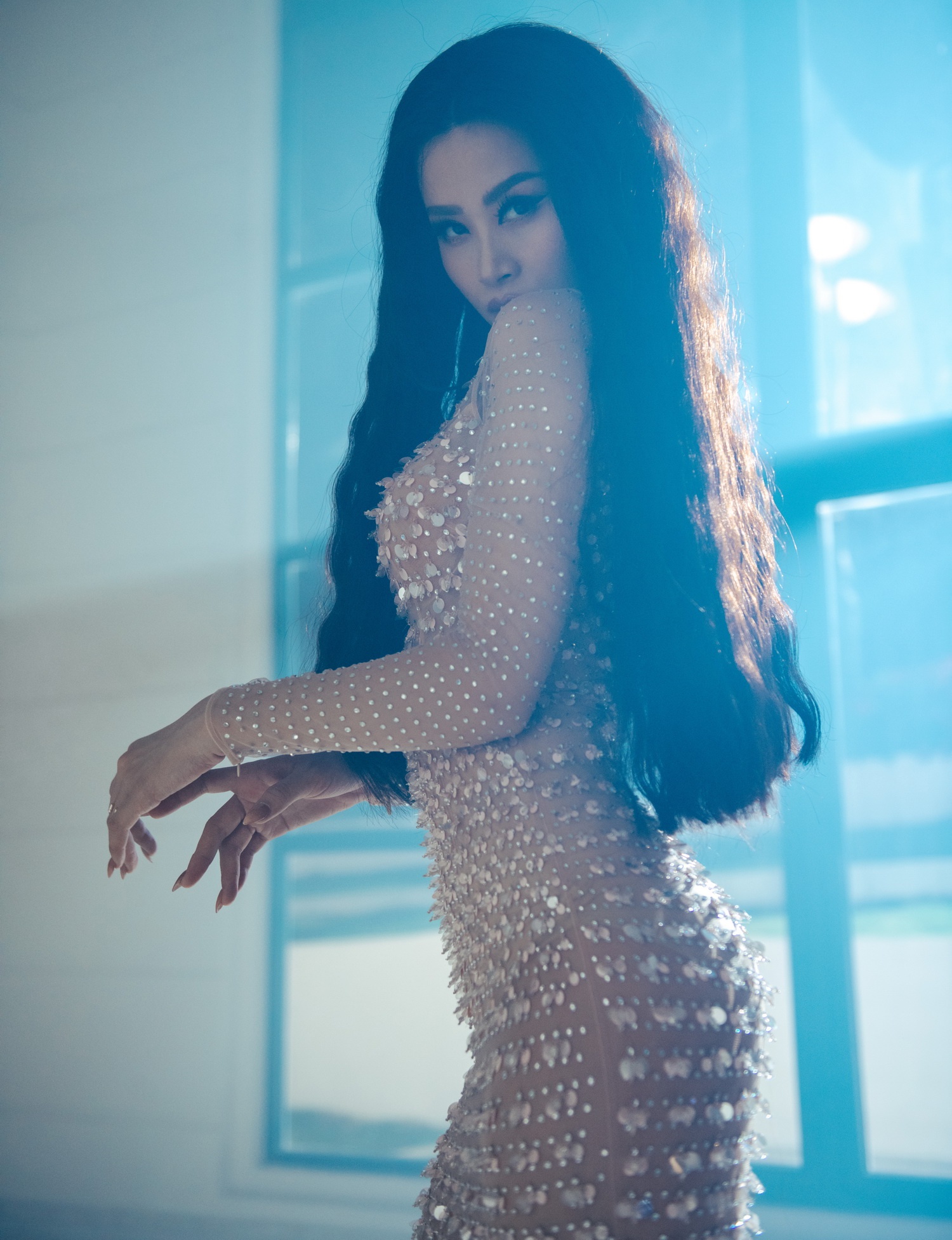 Bộ cánh tiếp theo mà nữ ca sĩ chưng diện là một thiết kế ôm sát, đính đá lấp lánh.