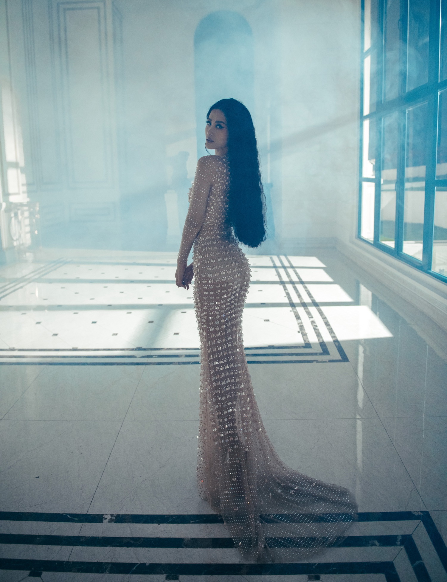 Tông màu nuy cùng chất liệu xuyên thấu được xử lí rất khéo, không hề đem đến cảm giác phô phang, hở bạo.