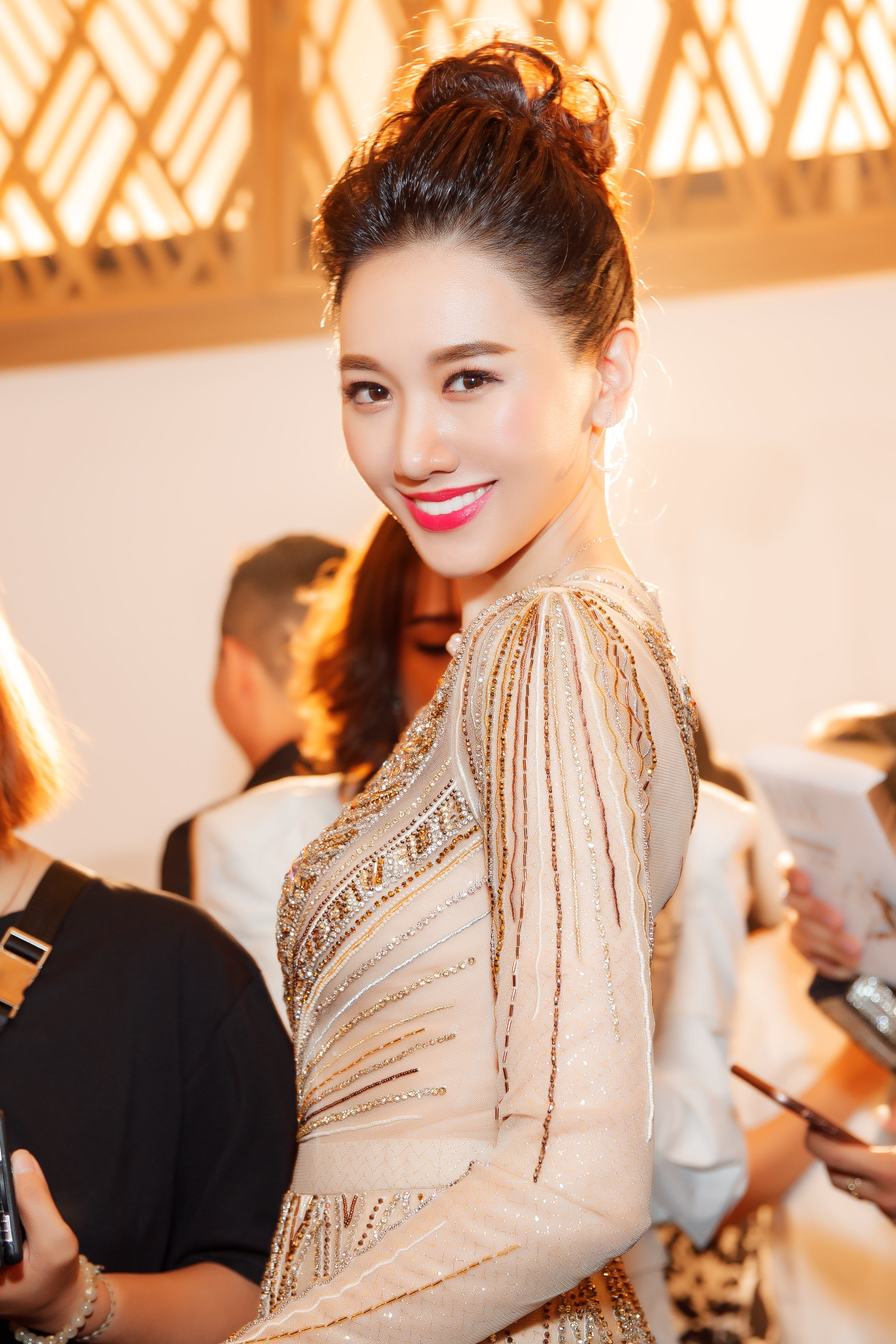 Cô diện một thiết kế tông màu nude với cảm hứng bay bổng đến từ nhà thiết kế Lê Thanh Hòa.
