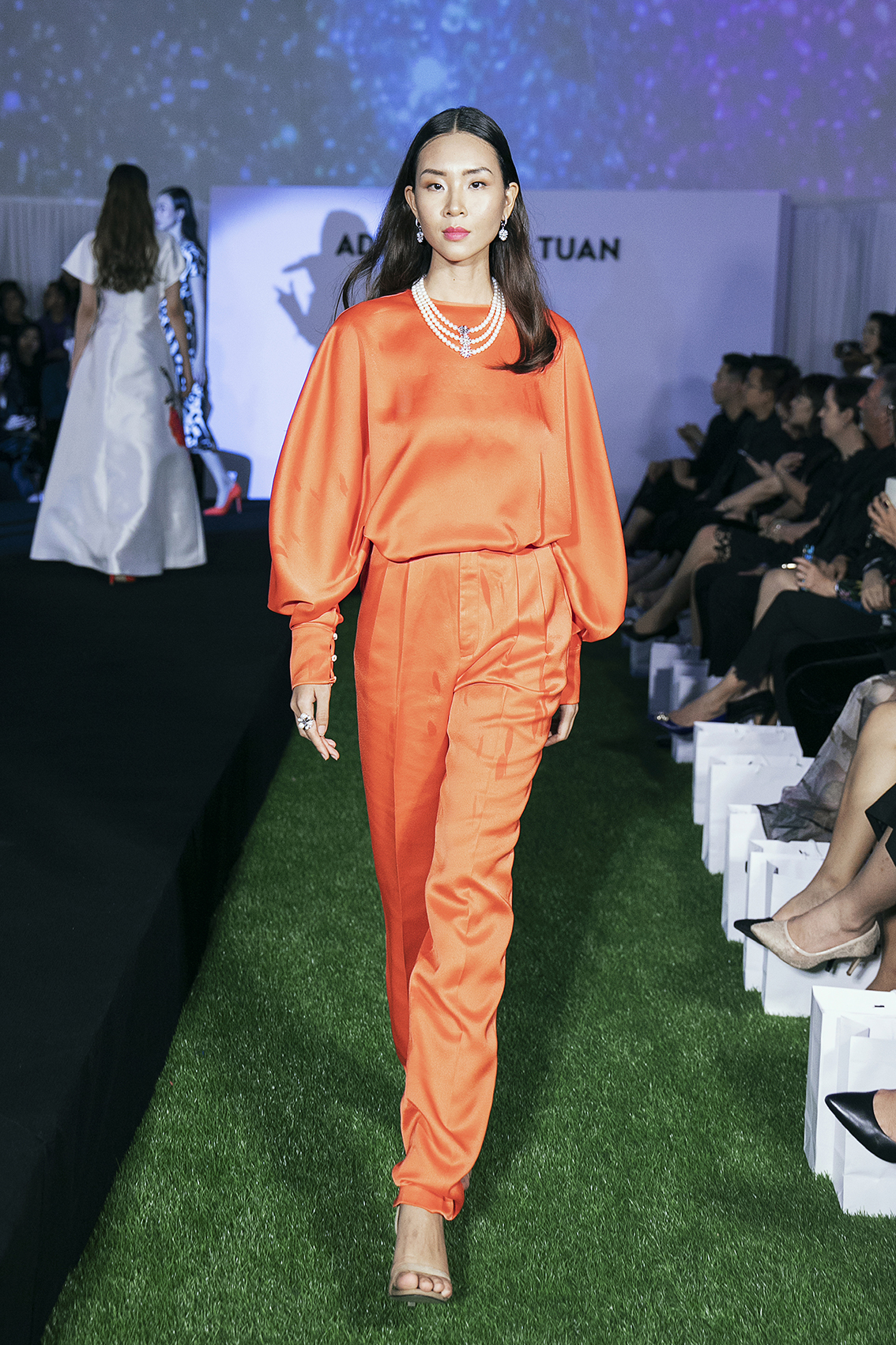 Màn chào kết khi Adrian Anh Tuấn dắt tay 2 nàng hoa hậu, cùng danh ca Thanh Hà trong khi toàn bộ dàn người mẫu ngồi quanh sàn catwalk tạo được một hiệu ứng bất ngờ, nhận được sự cổ vũ nồng nhiệt từ khách mời tham dự.