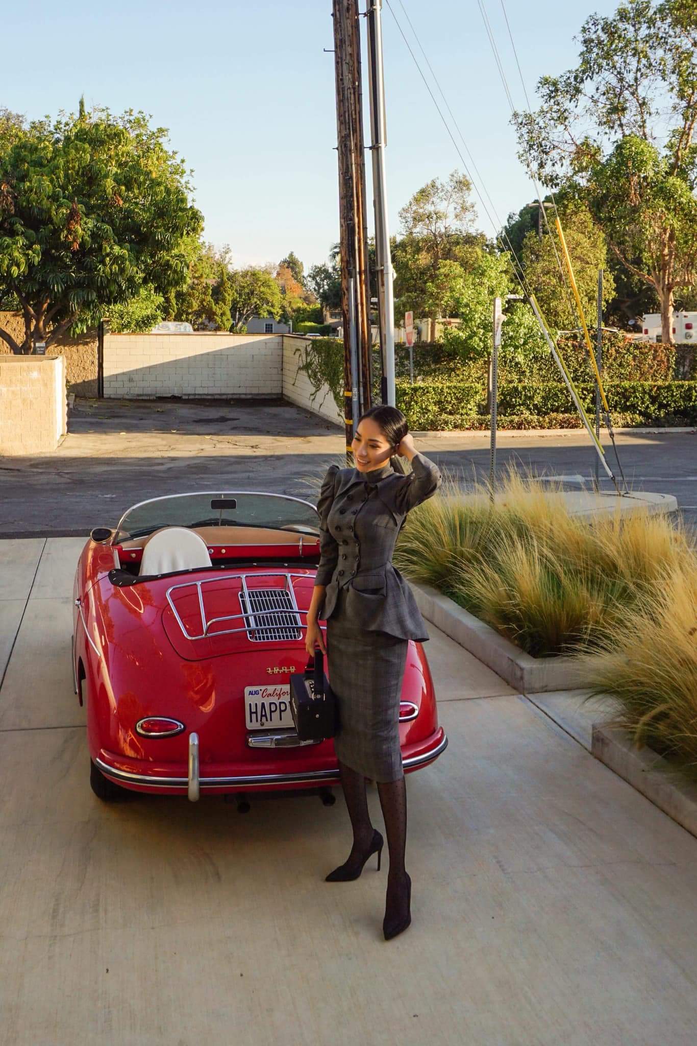 Hoa hậu Châu Á quốc tế Saila Nguyễn tiếp tục trưng dụng phong cách cổ điển, sang trọng khi diện áo peplum mix cùng chân váy đồng chất liệu. Người đẹp còn cực kỳ có tâm trong khâu chụp ảnh khi cầm hẳn “đạo cụ” là chiếc loa cổ để tạo dáng.