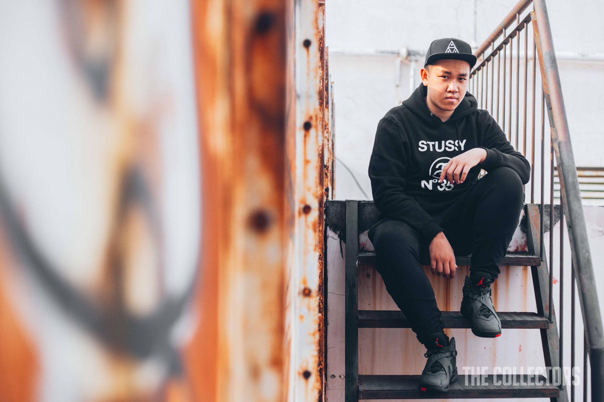 Công thức đơn giản: Hoodie Stüssy + Air Jordan 8 “Take Flight” là đủ chất lắm rồi. (Ảnh: Viet Pham)