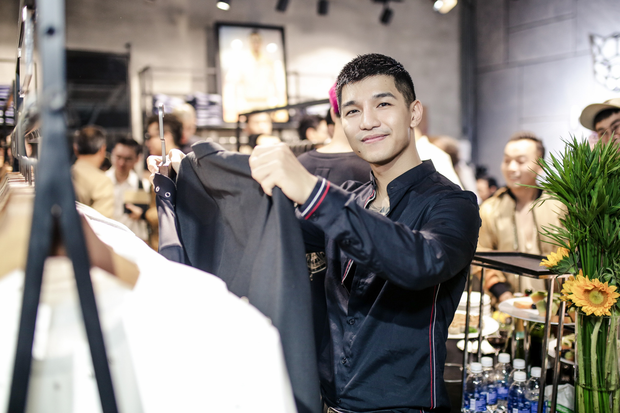 Tối ngày 14/5 trong không gian cửa hàng tọa lạc tại trung tâm Q1, sự kiện ra mắt BST dành riêng cho nam giới của Chung Thanh Phong không chỉ quy tụ dàn sao nổi đình nổi đám của showbiz Việt như Gil Lê, Cường Seven, Đào Bá Lộc, MC Phan Anh, Bùi Anh Tuấn, Quang Vinh, Mai Tiến Dũng, người mẫu Trang Trần, ca sĩ Trang Pháp, ca sĩ Đăng Khôi cùng vợ Thủy Anh, Tiến Công,… mà còn có sự xuất hiện của hàng loạt mẫu nam điển trai với thần thái ngời ngời “đốn tim” fan nữ.