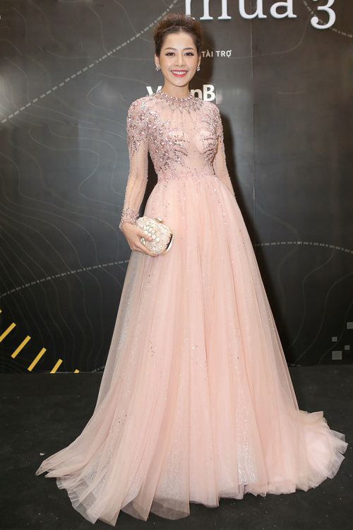 Tại một sự kiện hồi đầu năm, Chi Pu gây ấn tượng với váy xuyên thấu màu hồng nhạt kết hợp ví cầm tay đính đá sang trọng.